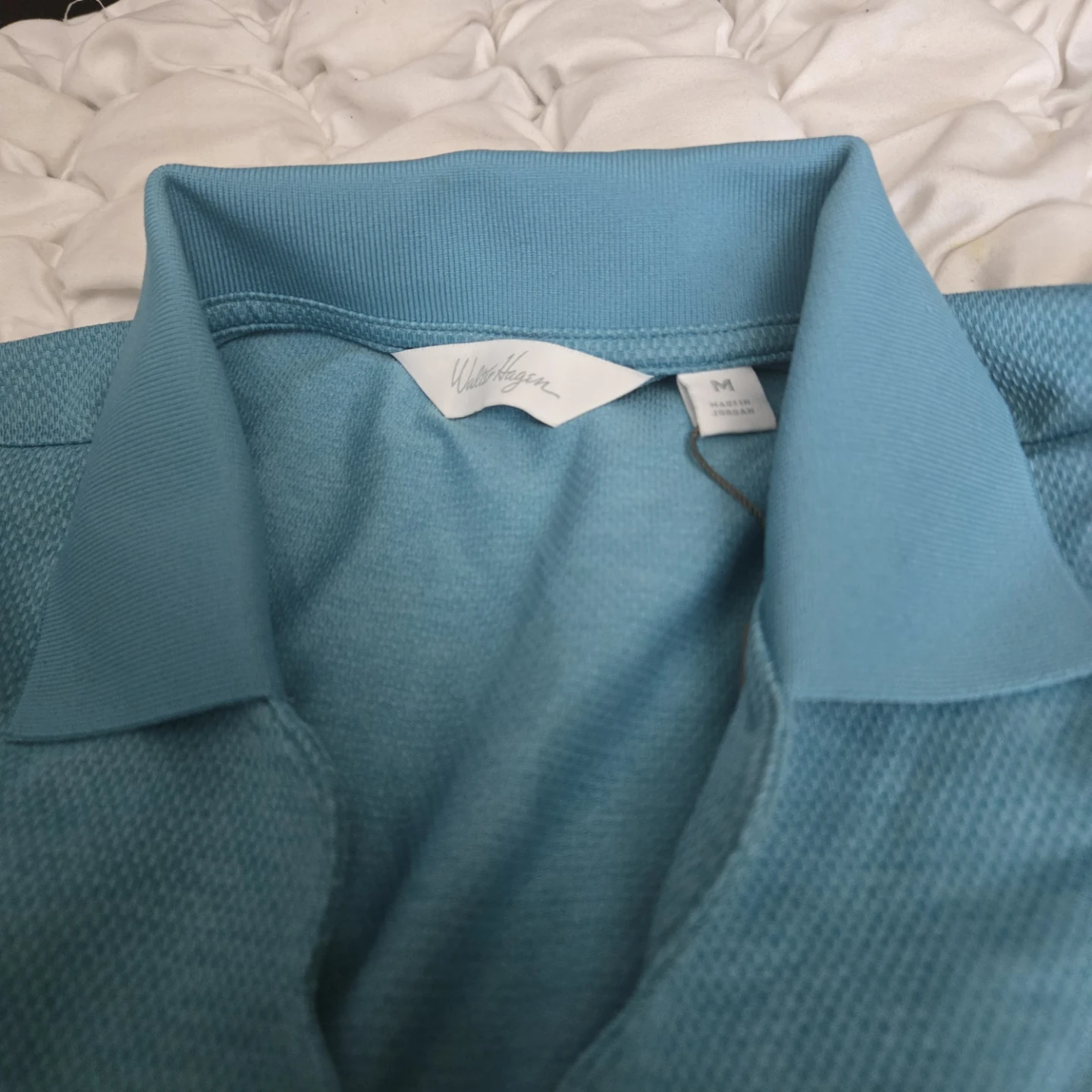 Selling a Walter Hagen Clubhouse polo shirt in size medium. The shirt is a nice light blue color and appears to be in good condition!