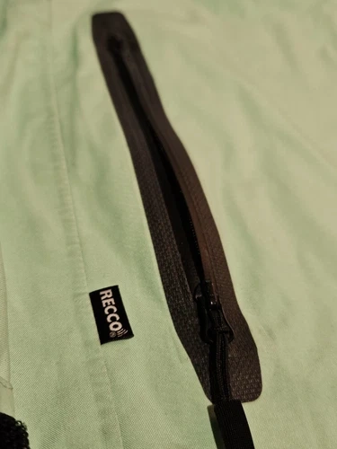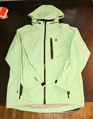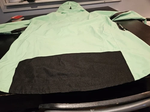 This high-quality Mint color ski shell jacket is perfect for any man who loves hitting the slopes. Designed with skiing in mind, this jacket is perfect for any winter sports. It great shell jacket for the rain as well. It was used for one season, no rips, no cuts of any kind. It's has minimal wear blemishes of use