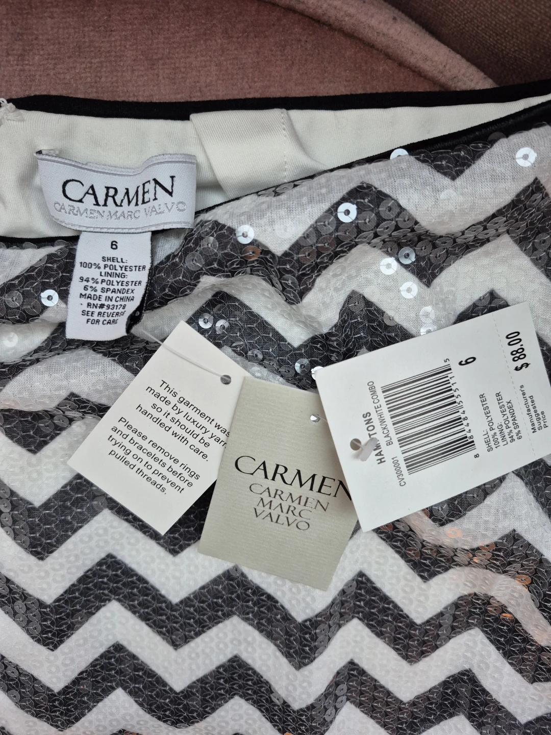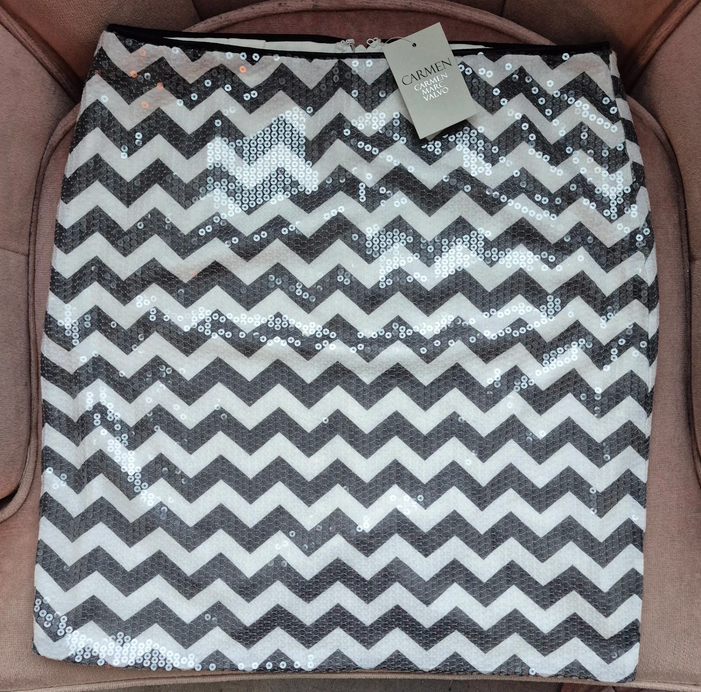 Selling a cute Carmen Marc Valvo skirt! It has a fun chevron pattern with sequins.