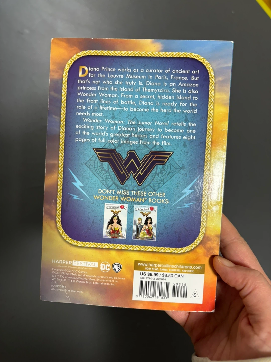 Selling a copy of Wonder Woman: The Junior Novel. It retells the exciting story of Diana's journey to become one of the world's greatest heroes and features eight pages of full-colour images from the film