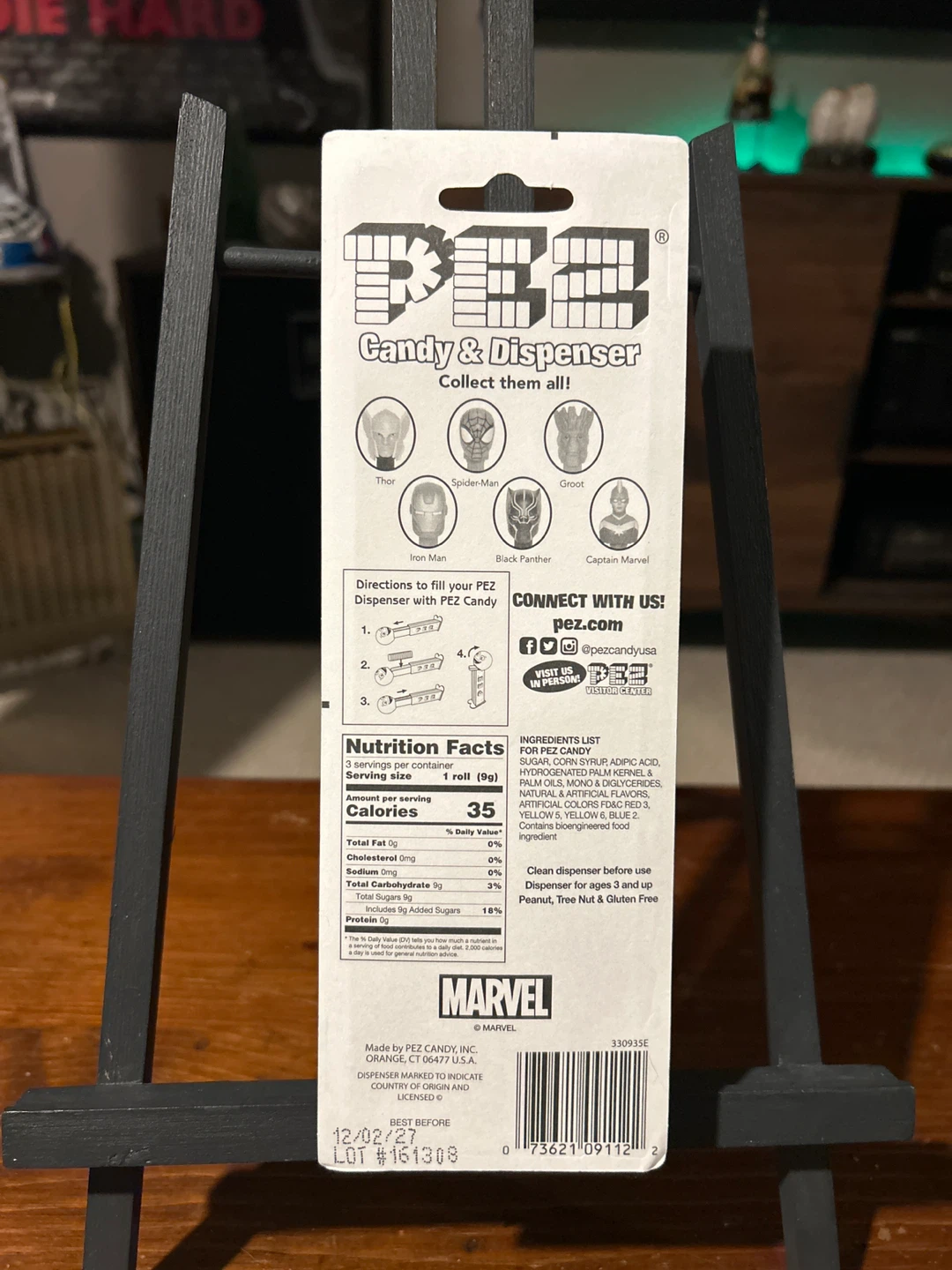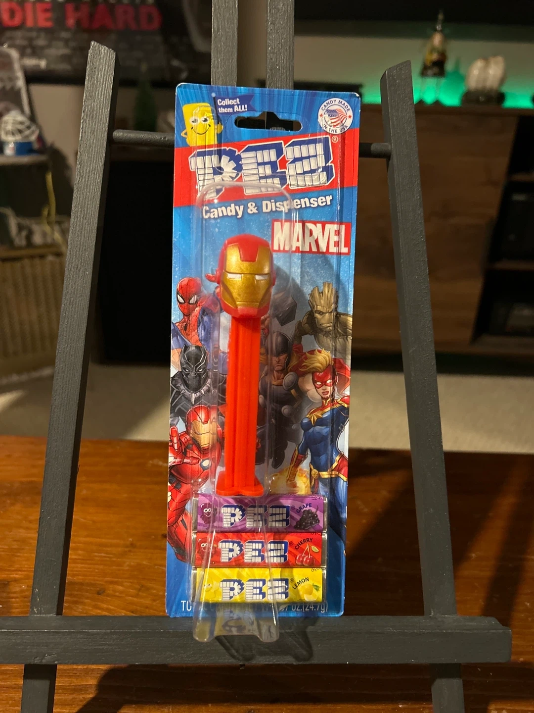 I'm selling a Marvel Iron Man Pez candy dispenser. It's in new condition, still in the original packaging! This collectible dispenser features Iron Man and comes with Pez candies. Perfect for Marvel fans and Pez collectors alike