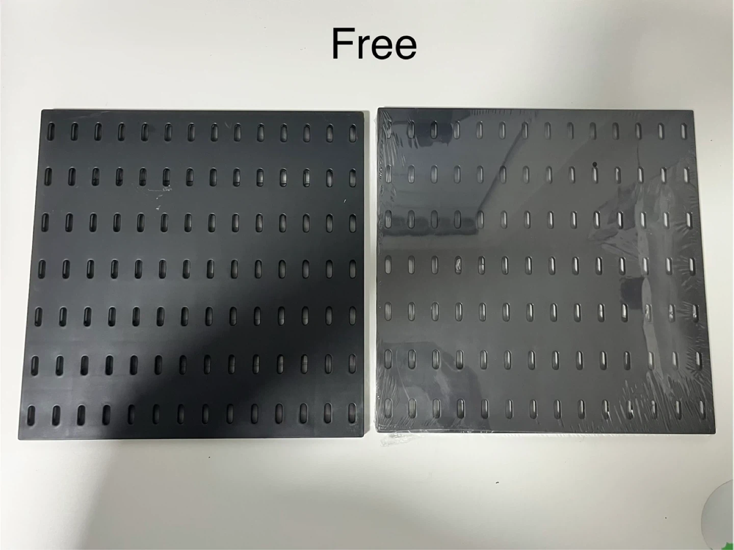 For FREE I’ll include 2 plastic pegboards ( 11’x11’) equipped with adhesive in the back for an easy and mess free installation. It is recommended to pre-heat the stickers with a hairdryer and press firmly for one minute for a the best bond. You must let the frame sit for 48 hours before attaching before attaching any accessories to it.