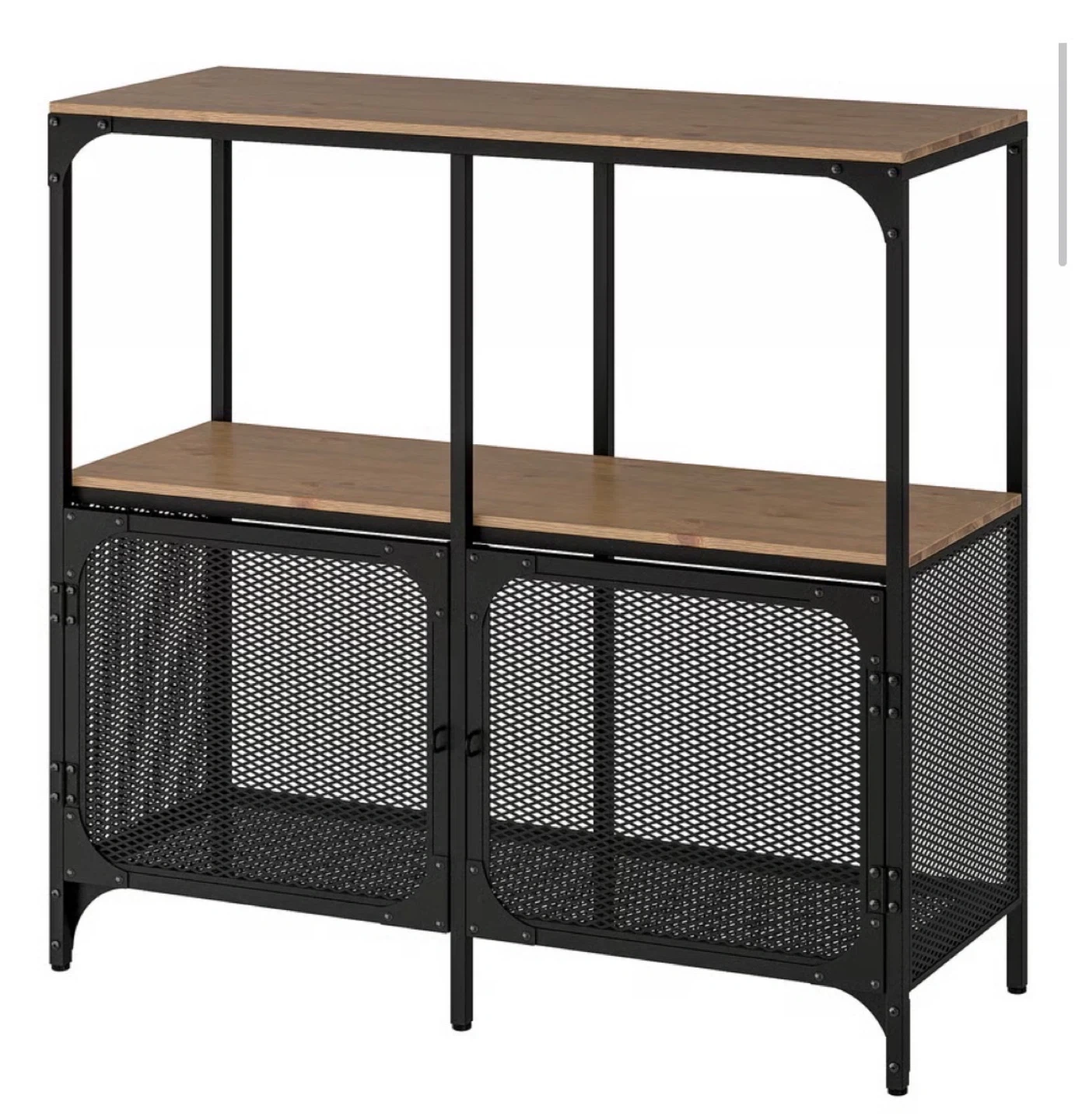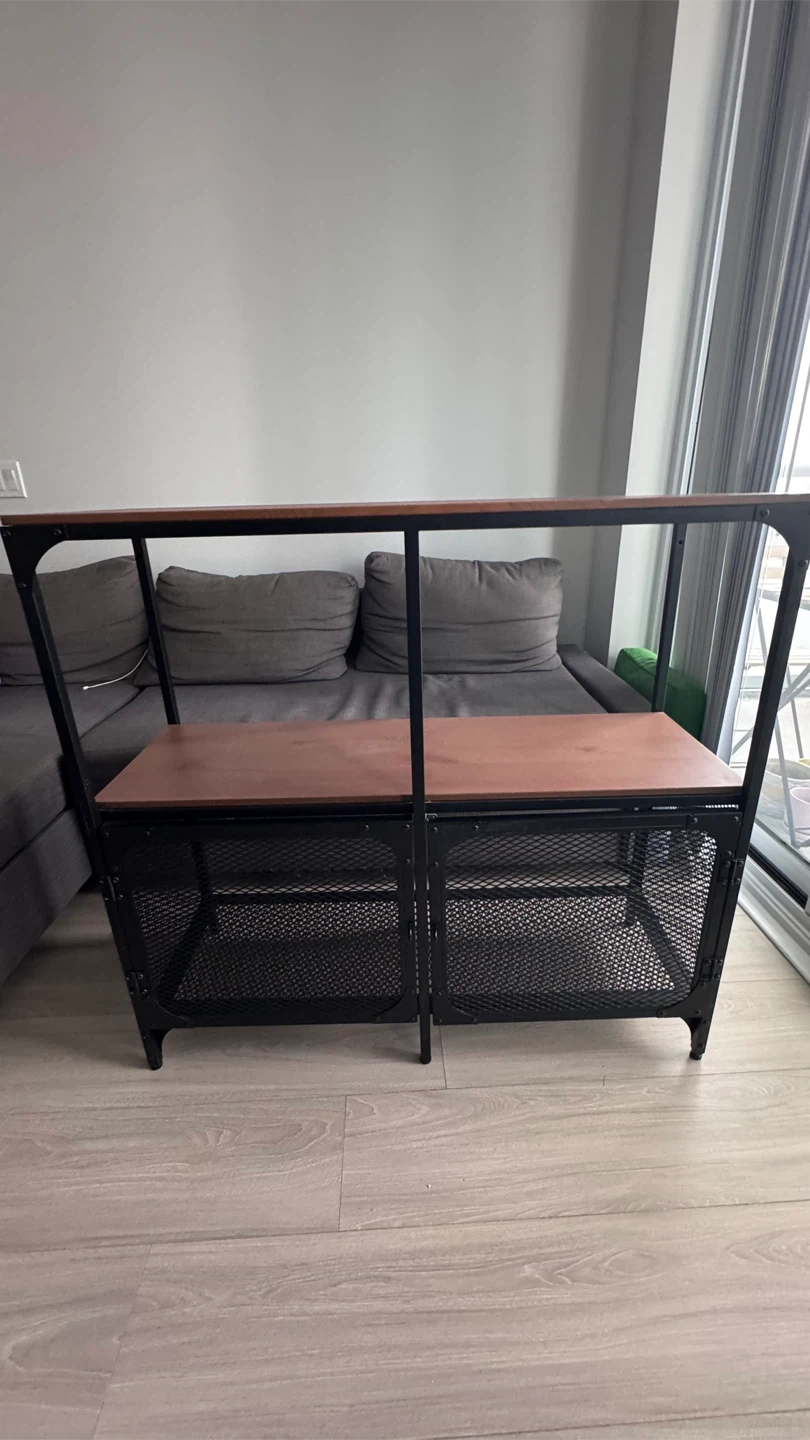 IKEA FJÄLLBO shelf unit in great condition. Rustic industrial style made of black metal and solid wood, so each piece has its own unique look.