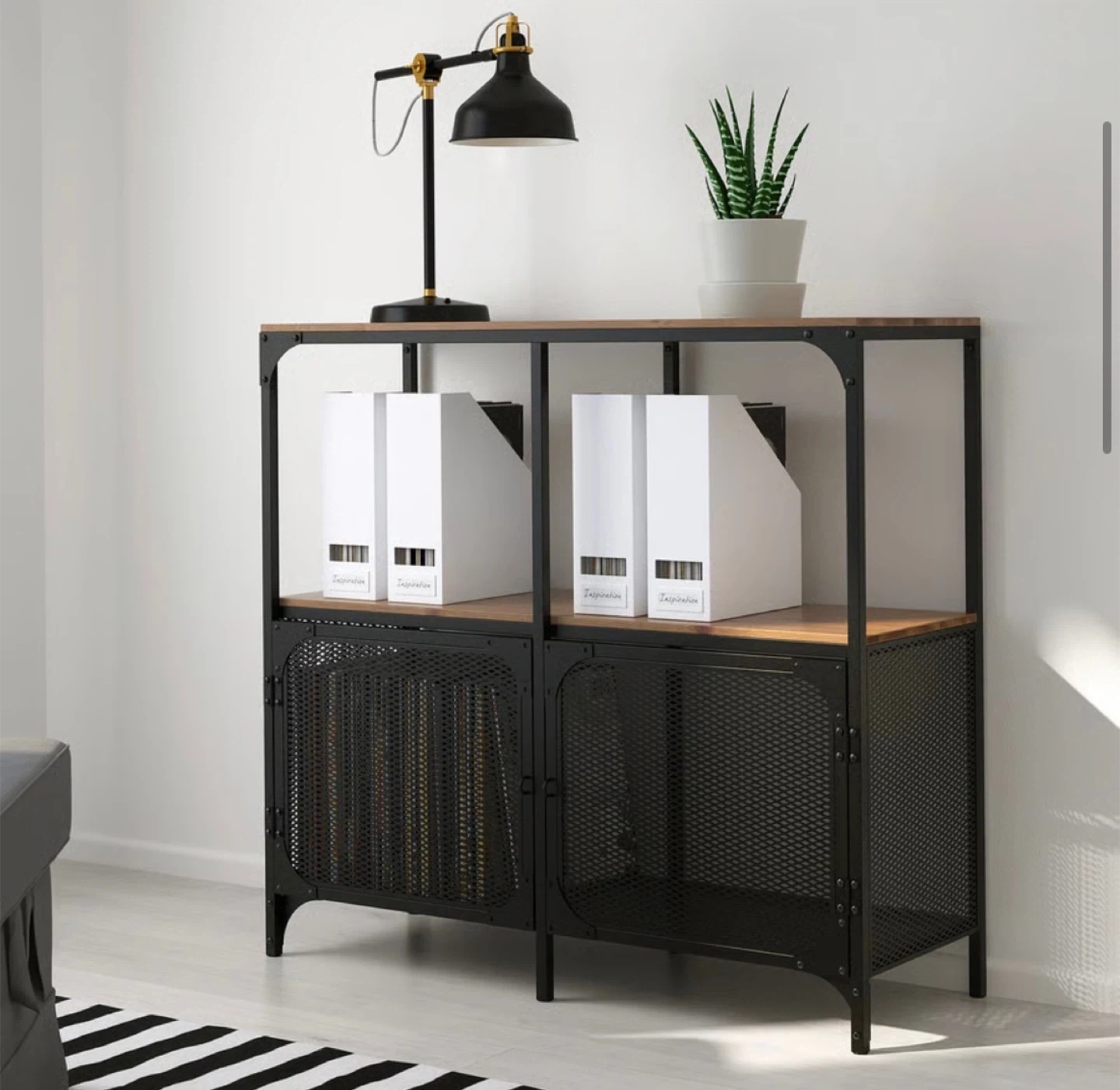 IKEA FJÄLLBO Shelf Unit – Black Metal & Solid Wood