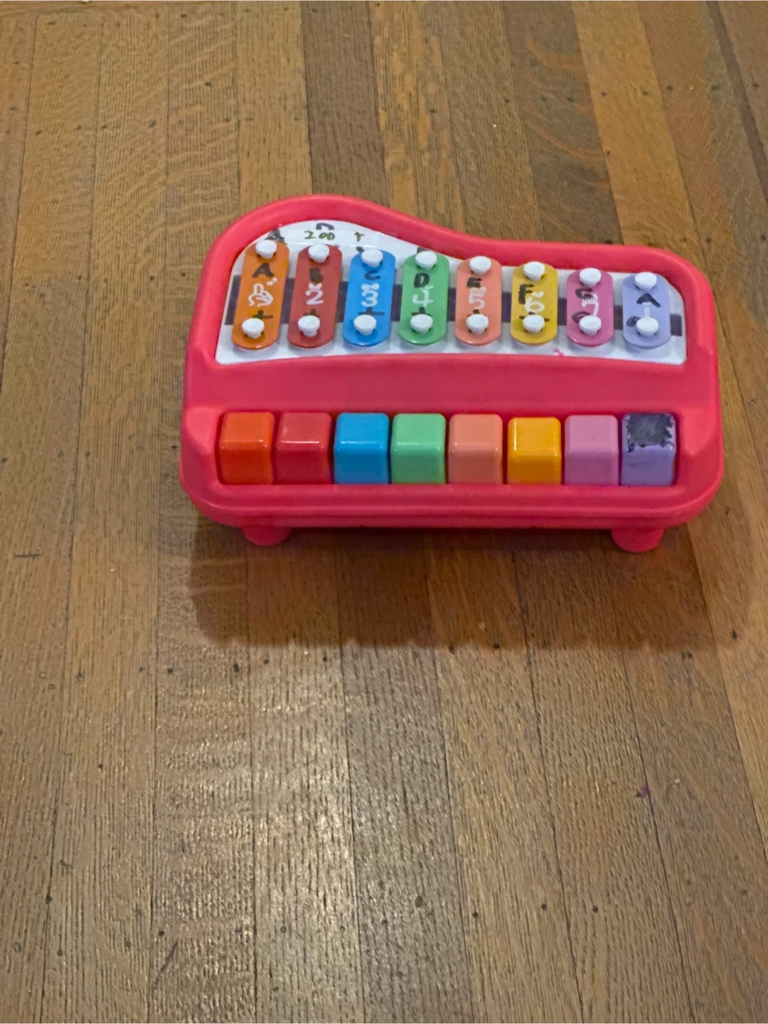 Here's a cute little xylophone piano toy for kids! It's in good condition and ready for a new little musician