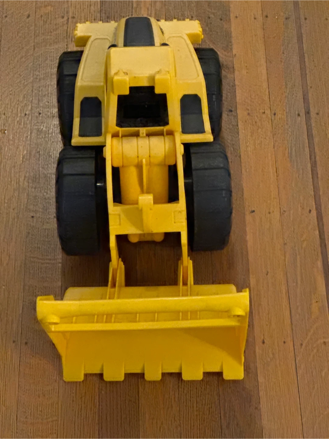 Selling a toy bulldozer, perfect for indoor or outdoor play! It's made of durable yellow plastic and has large black wheels. It's in good condition and ready for a new adventure