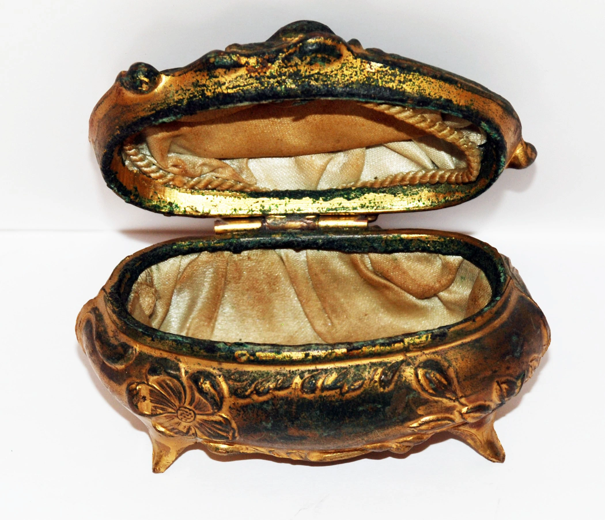 Antique TRINKET BOX JEWELRY CASKET Embossed Roses Floral Patina