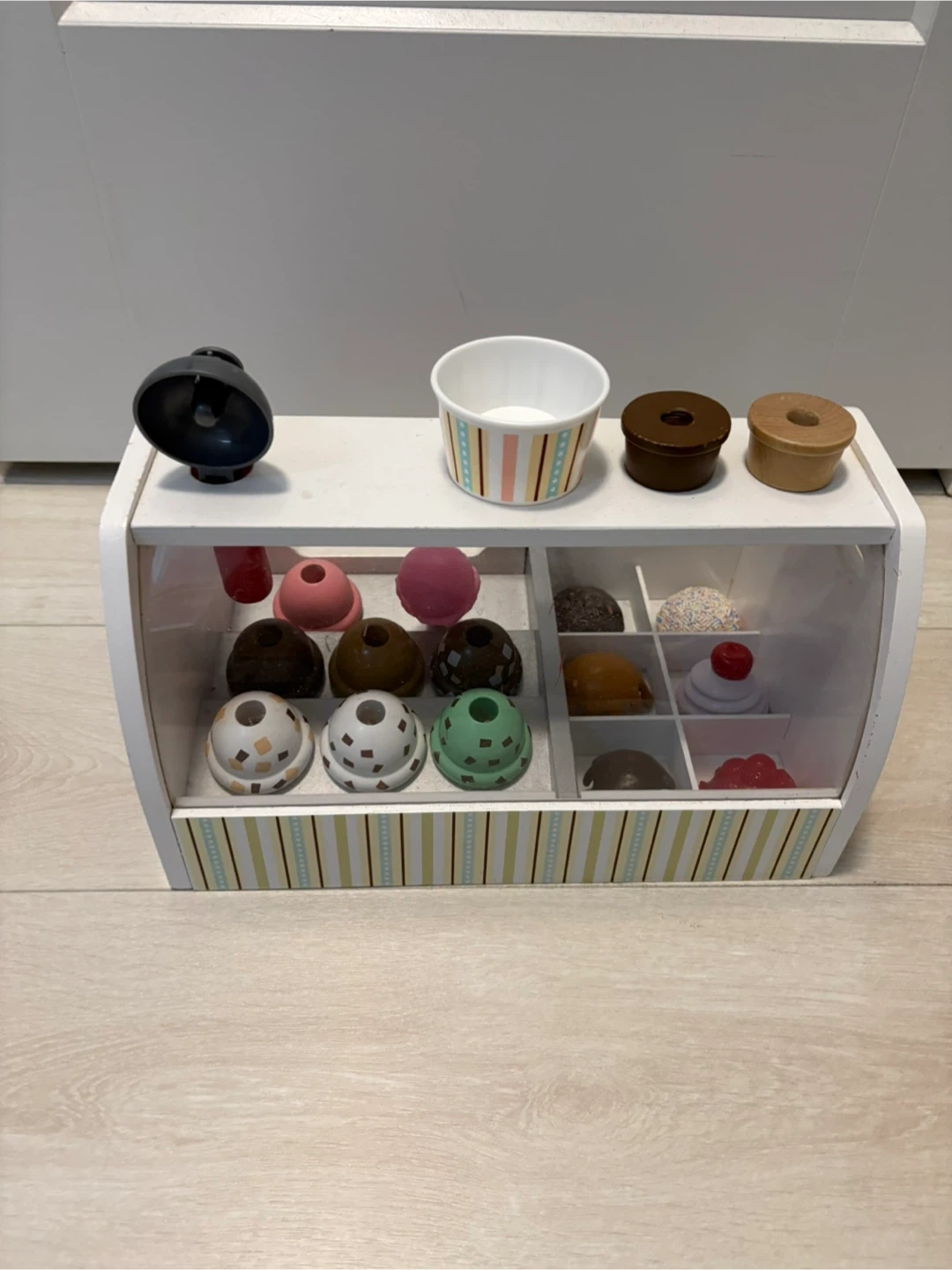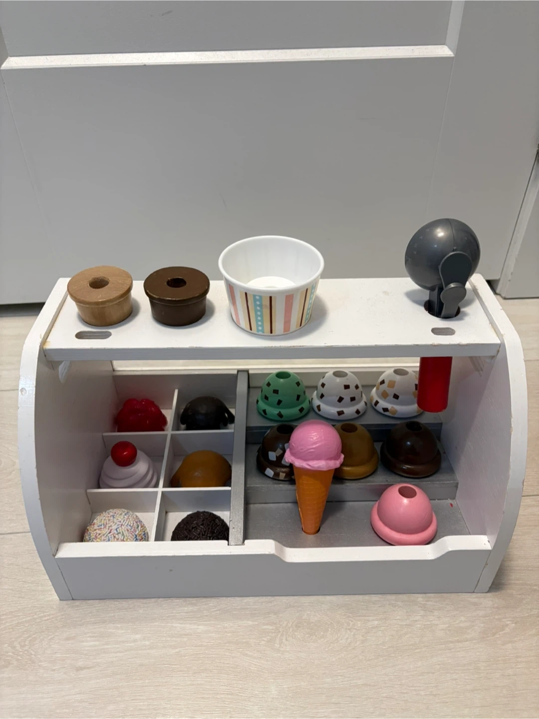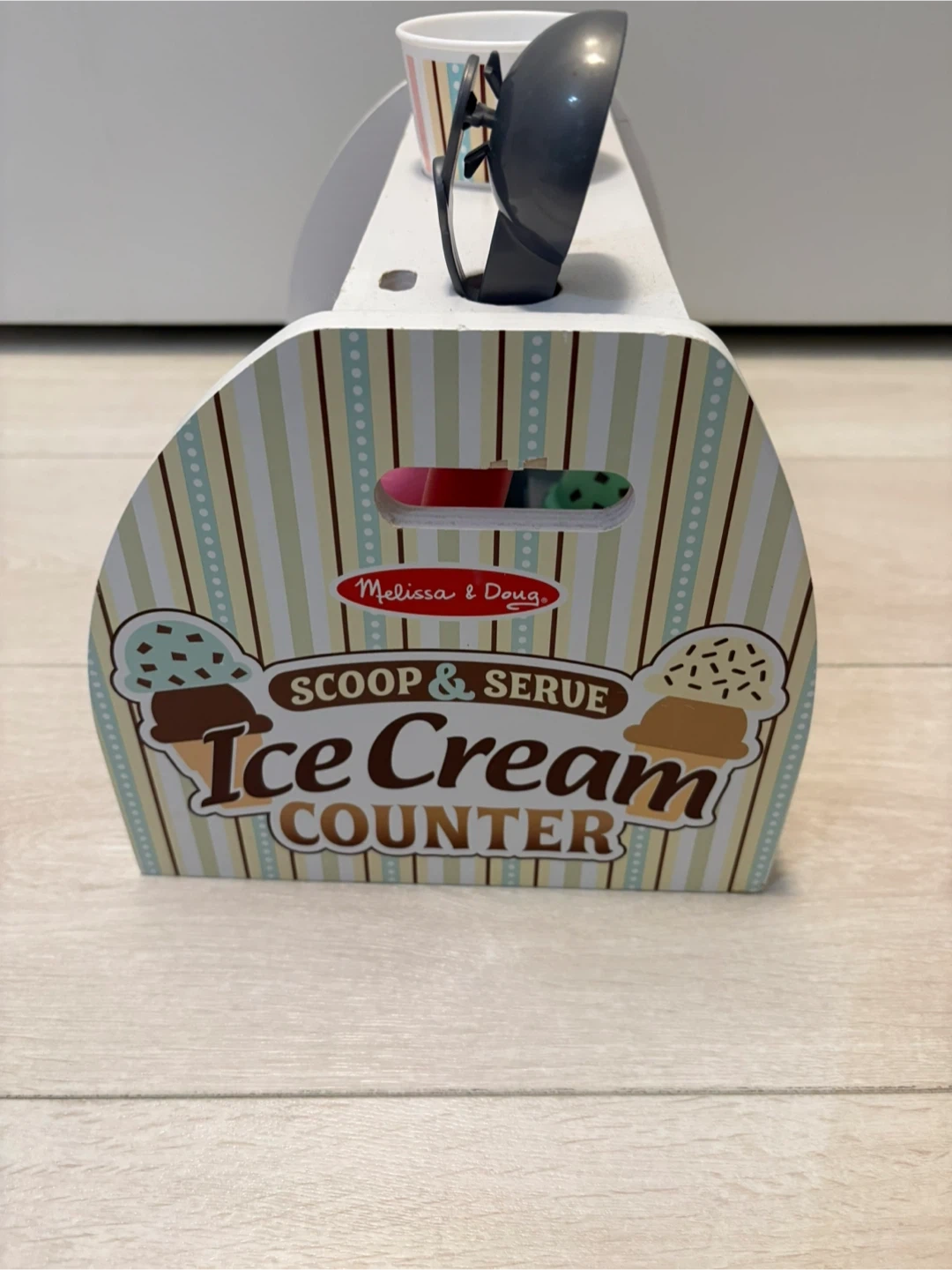 Selling a Melissa & Doug Scoop & Serve Ice Cream Counter! It's in good condition, but one scoop of ice cream is missing! This set includes a variety of colourful ice cream scoops and toppings, perfect for hours of imaginative play.