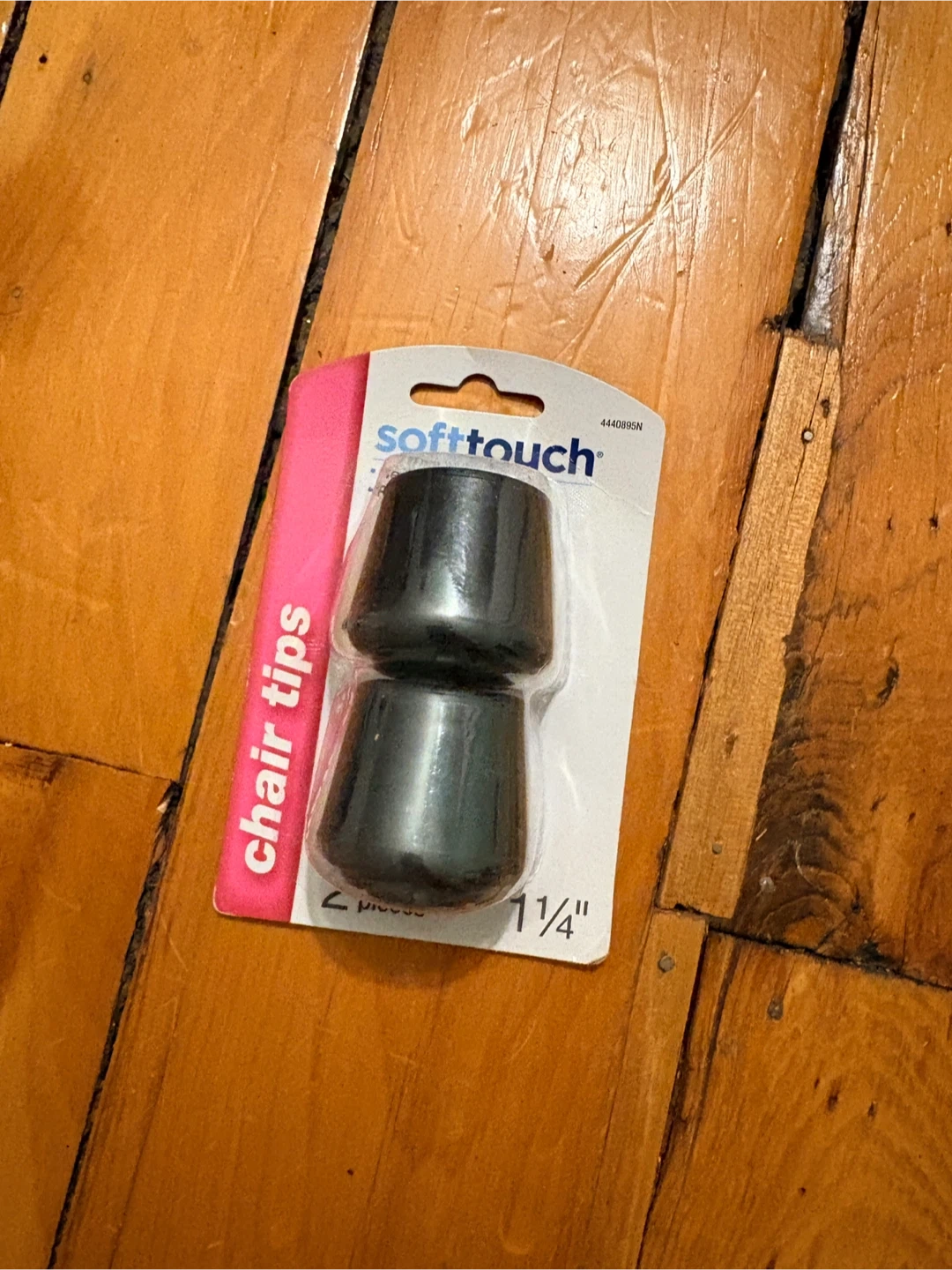 Selling a pack of SoftTouch chair tips! These are great for protecting your floors from scratches and scuffs. They can be used on tables, chairs, foot stools, and bar stools. The pack contains two 1-1/4" rubber chair tips.