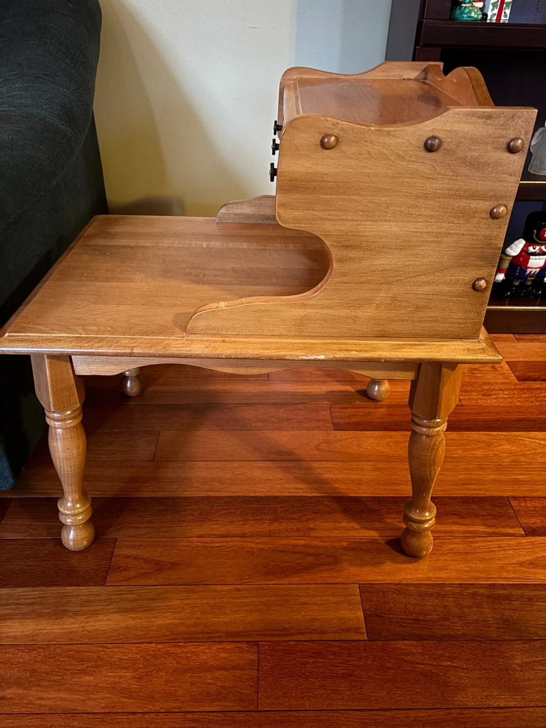 Made in Quebec, Canada from real maple. Vintage table in great condition. Mid-century modern maple and laminate two-tier table.