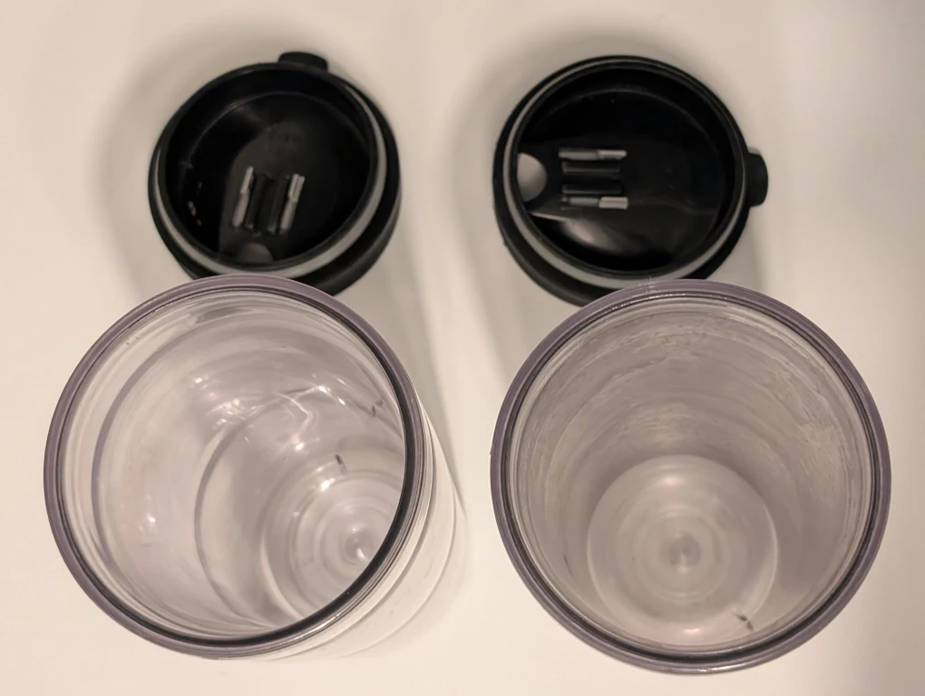 The only reason I'm selling is because I no longer drink the large canned BEvERageS that I used to drink, so they're too large for my needs. They definitely look well-used: can't quite wash away the look of water spots on them, and one is oddly kinda foggy, but they both still seemed perfectly functional temperature-wise when I used them last.