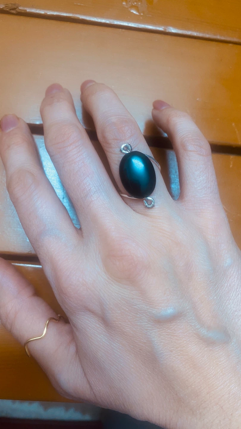 Selling a black agate oval ring. It's a unique piece that adds a touch of elegance to any outfit. Perfect for those who appreciate handcrafted jewelry!