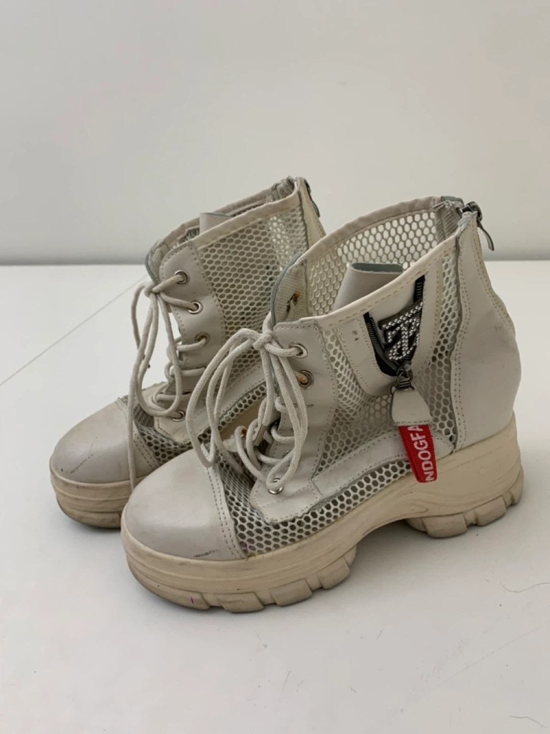 Women’s boots / shoes - DONGFA White Mesh Platform Ankle Boots - size 6