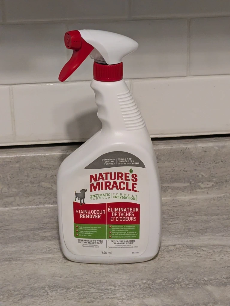 Selling a bottle of the Dog-specific Nature's Miracle Stain & Odour Remover. Its enzymatic formula is designed to eliminate stains and odours caused by dogs.