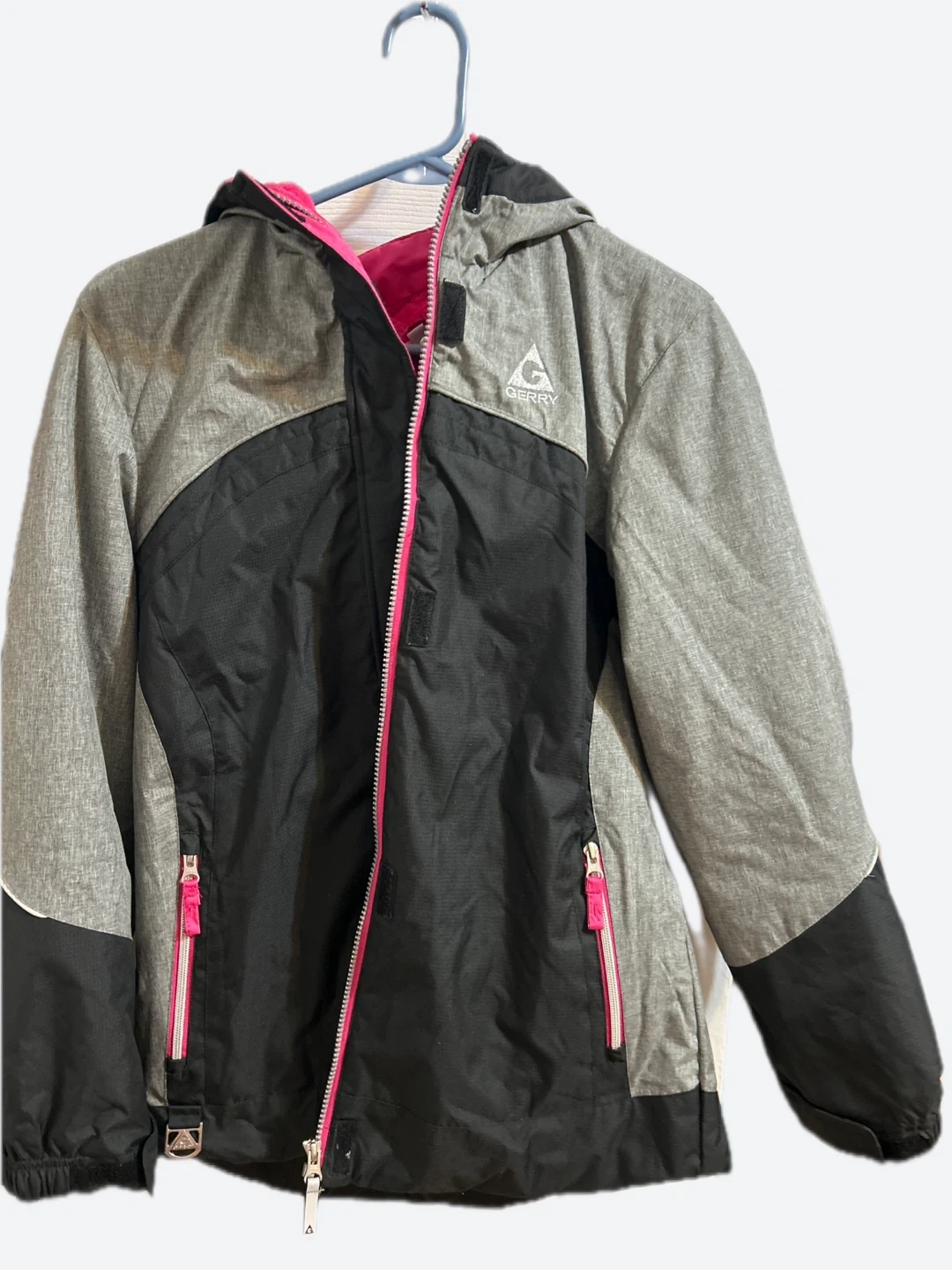 Selling a Gerry girls' winter jacket in size L (14/16). It's a stylish gray and black jacket with a bright pink lining.