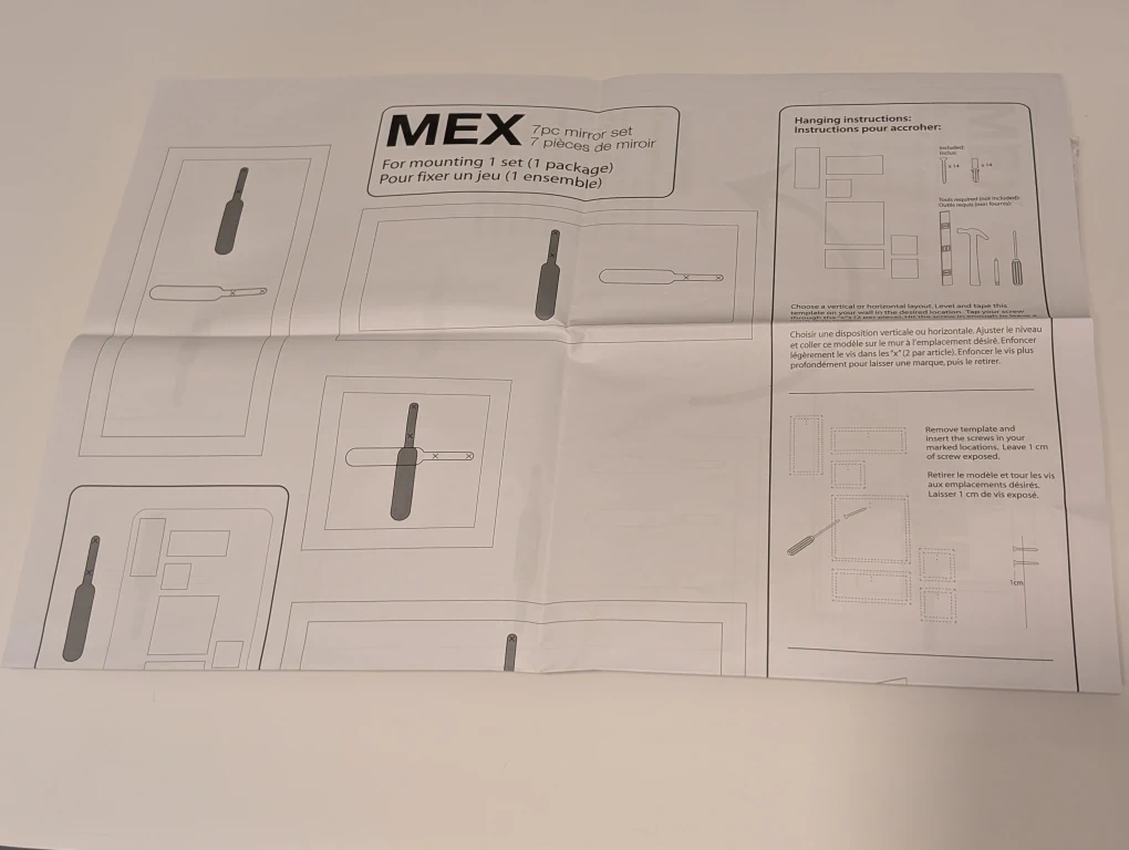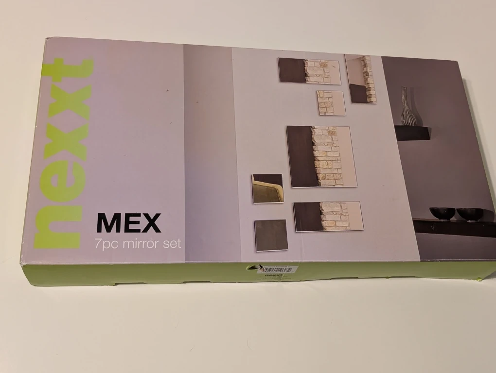 Selling a brand new Nexxt MEX 7-piece mirror set. It's still in the original packaging and includes all the components, including wall anchors and a template for placing them in the arrangement shown on the box.