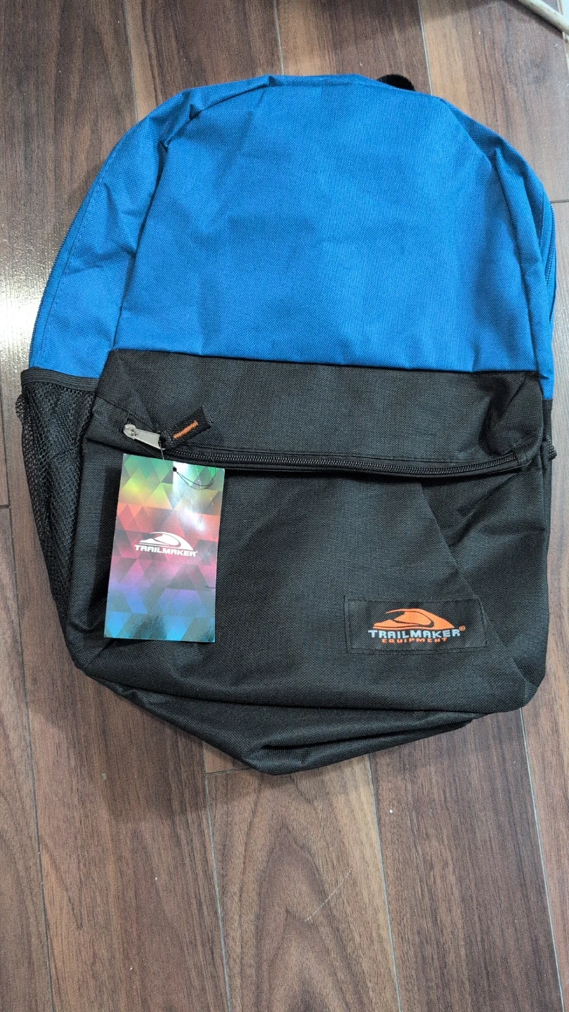 I'm selling a Trailmaker backpack in a nice blue and black colour combo! It looks like it's in great shape and ready for school or travel. The backpack features a front pocket and a mesh side pocket for water bottles or other essentials
