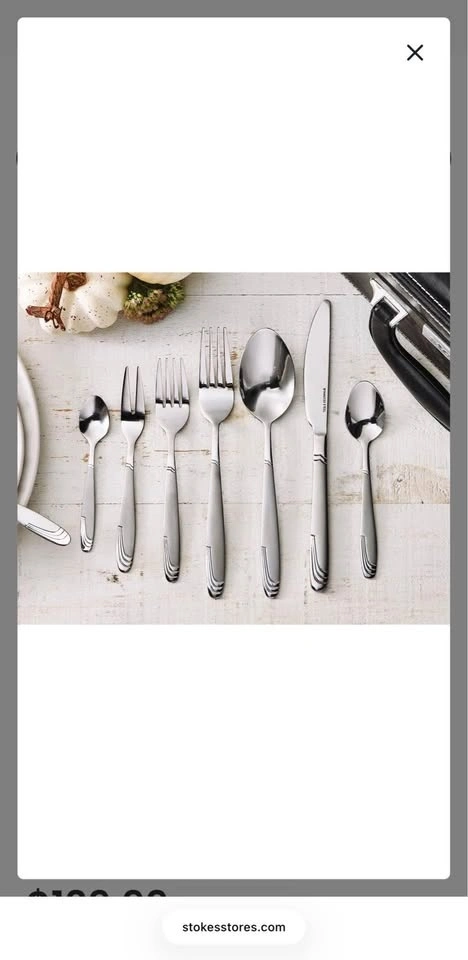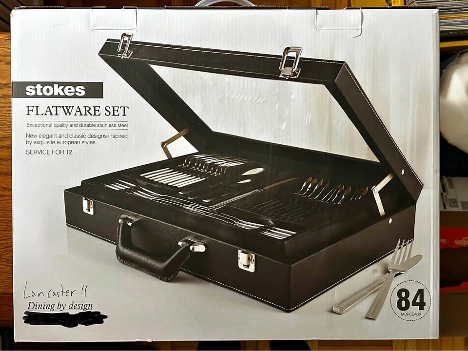 Brand new flatware set from Stokes! Received as a gift but didn’t need another set. Never been used or even opened!