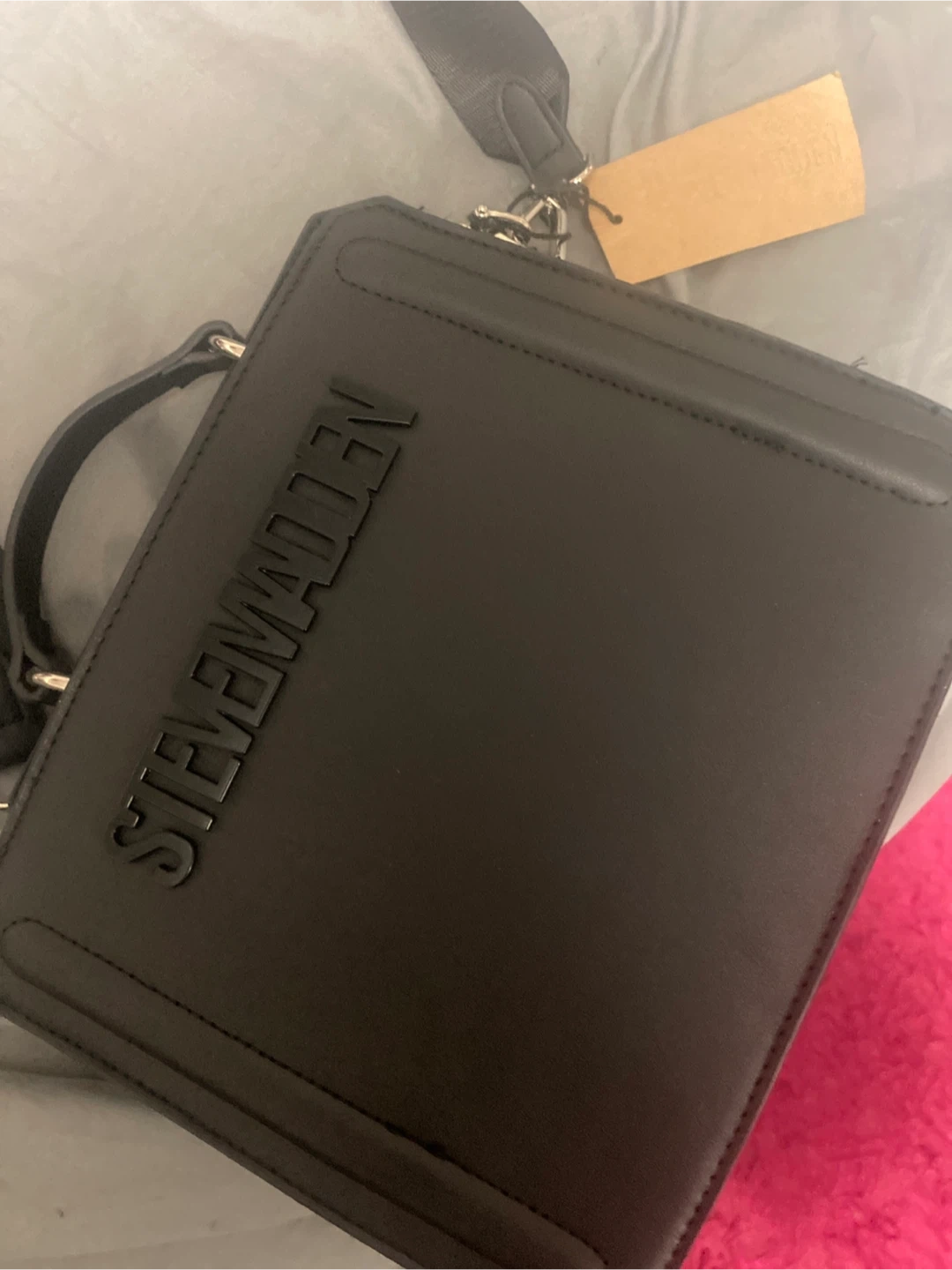 Selling a black crossbody bag from Steve Madden. It's in great shape and ready for a new owner! Perfect for everyday use or a night out ( NEVER WORN !)