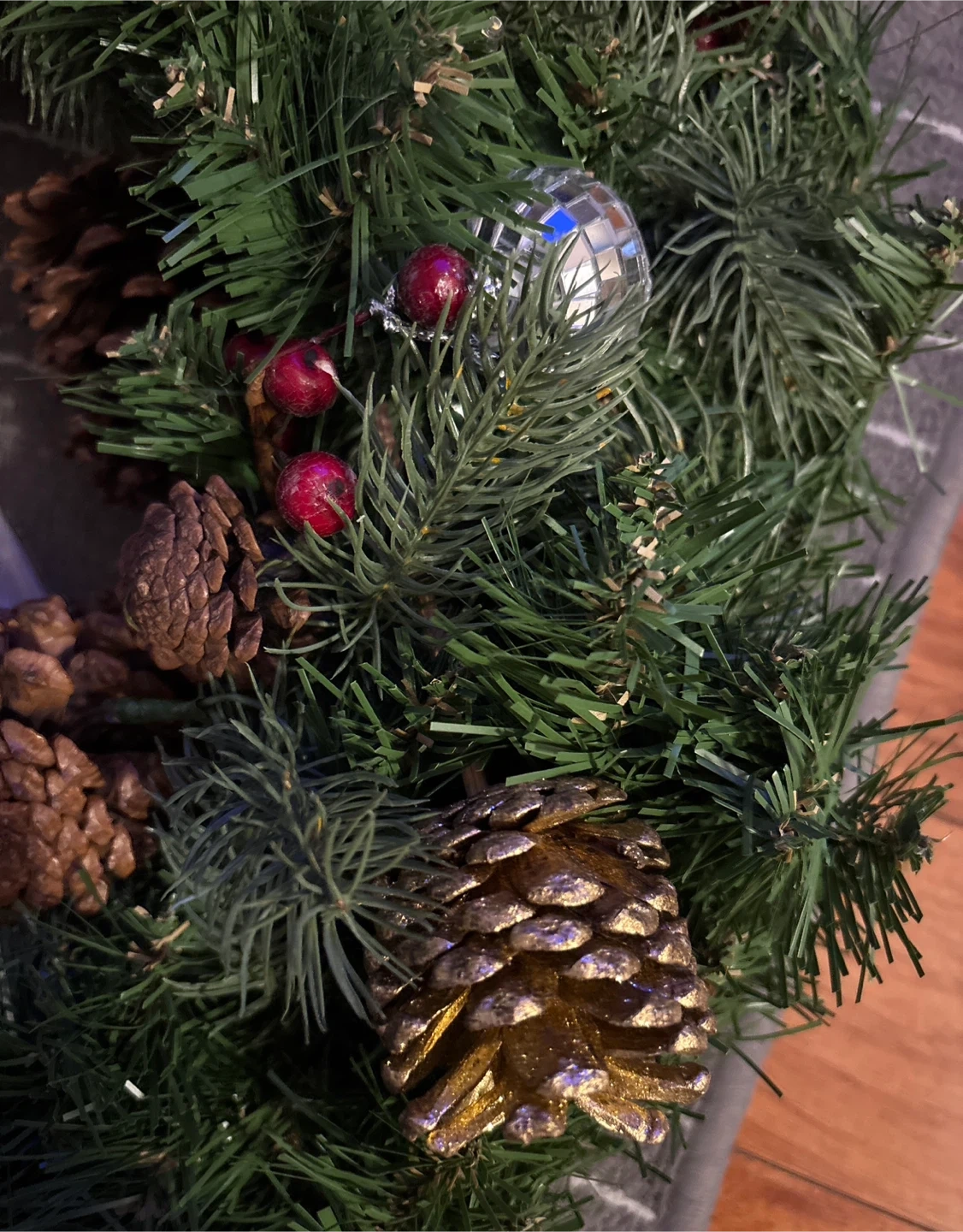 Christmas Wreath with Ornaments & Pine cones (18” diameter)