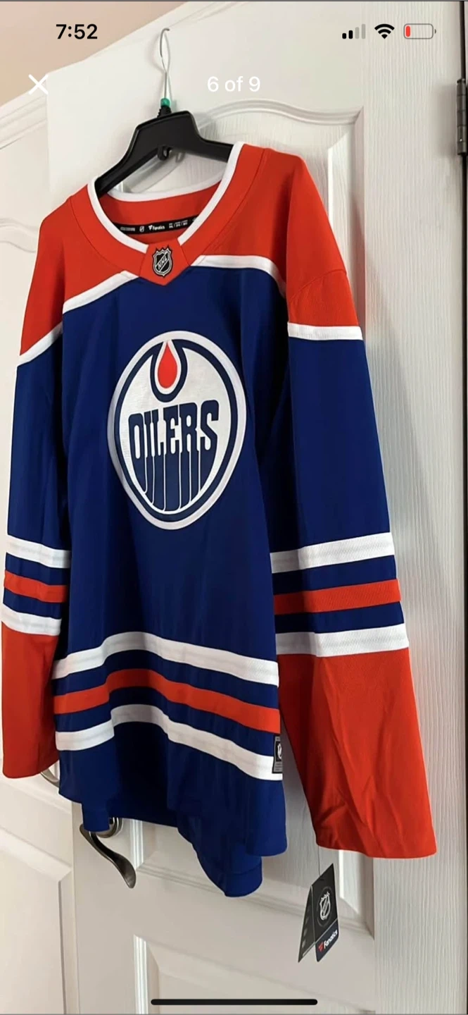 Buy & SellEdmonton Oilers NHL Fanatics JerseyEdmonton Oilers NHL Fanatics Jersey$120Selling an Edmonton Oilers NHL jersey by Fanatics. It features the classic Oilers colours and logo. Perfect for showing your team spirit!ConditionNewWHERE TO MEETVictoria and WestforestView MapSELLERverifiedMariaHighland W600 reviews0 chats·0 favorites·4 viewsSEND CHAT TO SELLERHi Maria! I’m interested in your listing.Hi Maria! I’m interested in your listing.Get the Karrot app to chatSign In to chat