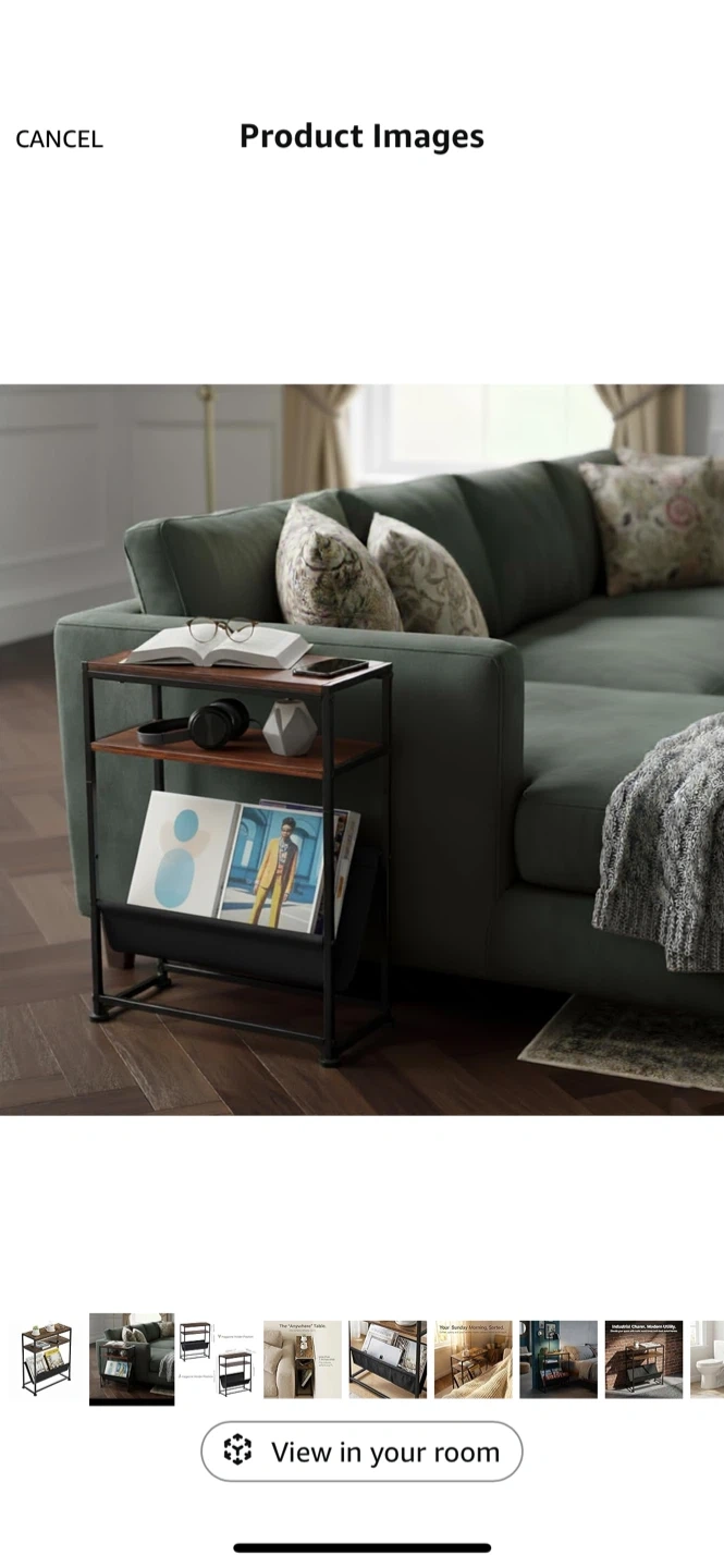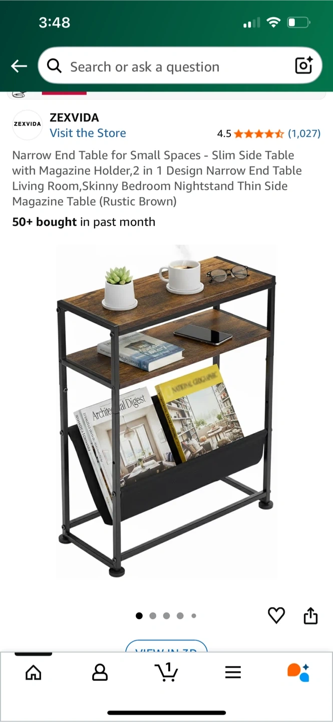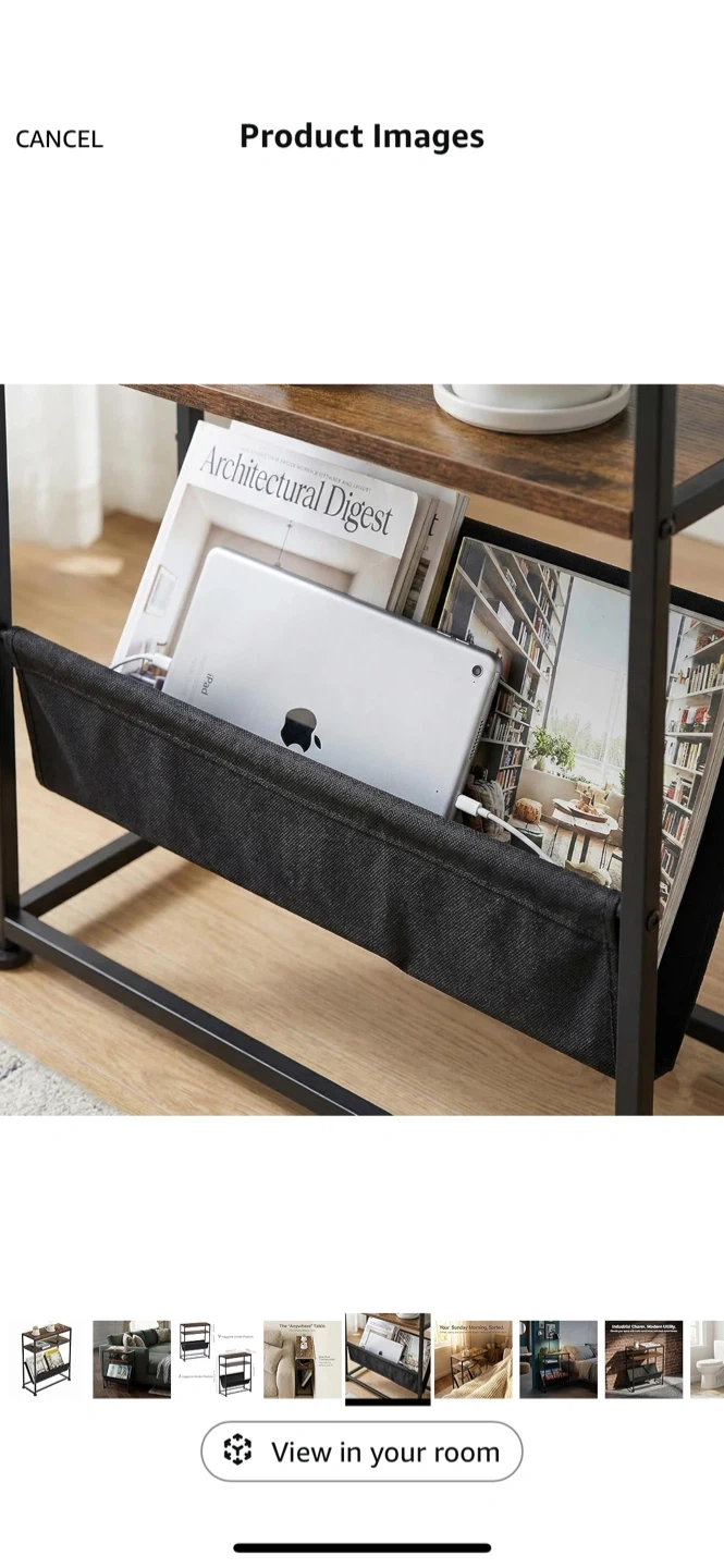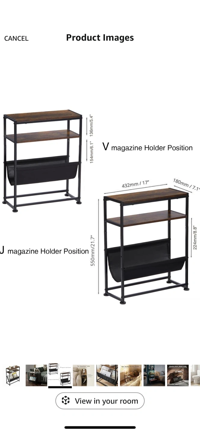 Selling a slim end table, perfect for tight spaces! It's less than 7 inches wide, so it fits where other tables can't. It's great for holding magazines and other items.