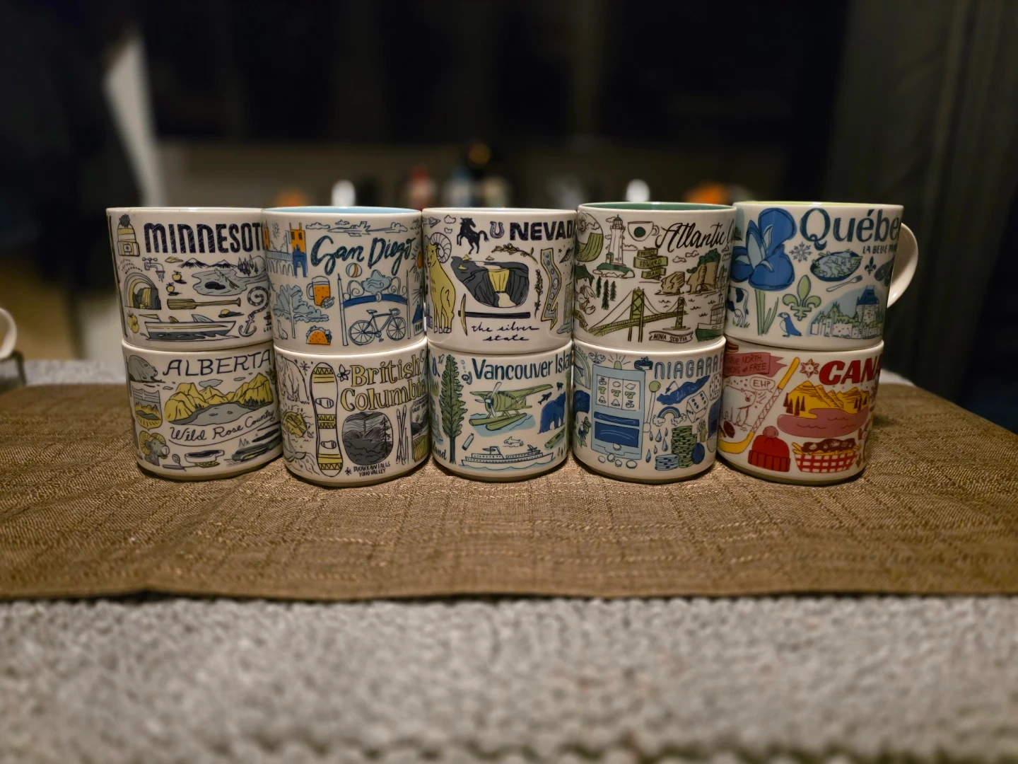 Selling a set of ten (10) souvenir mugs featuring different locations! They include: