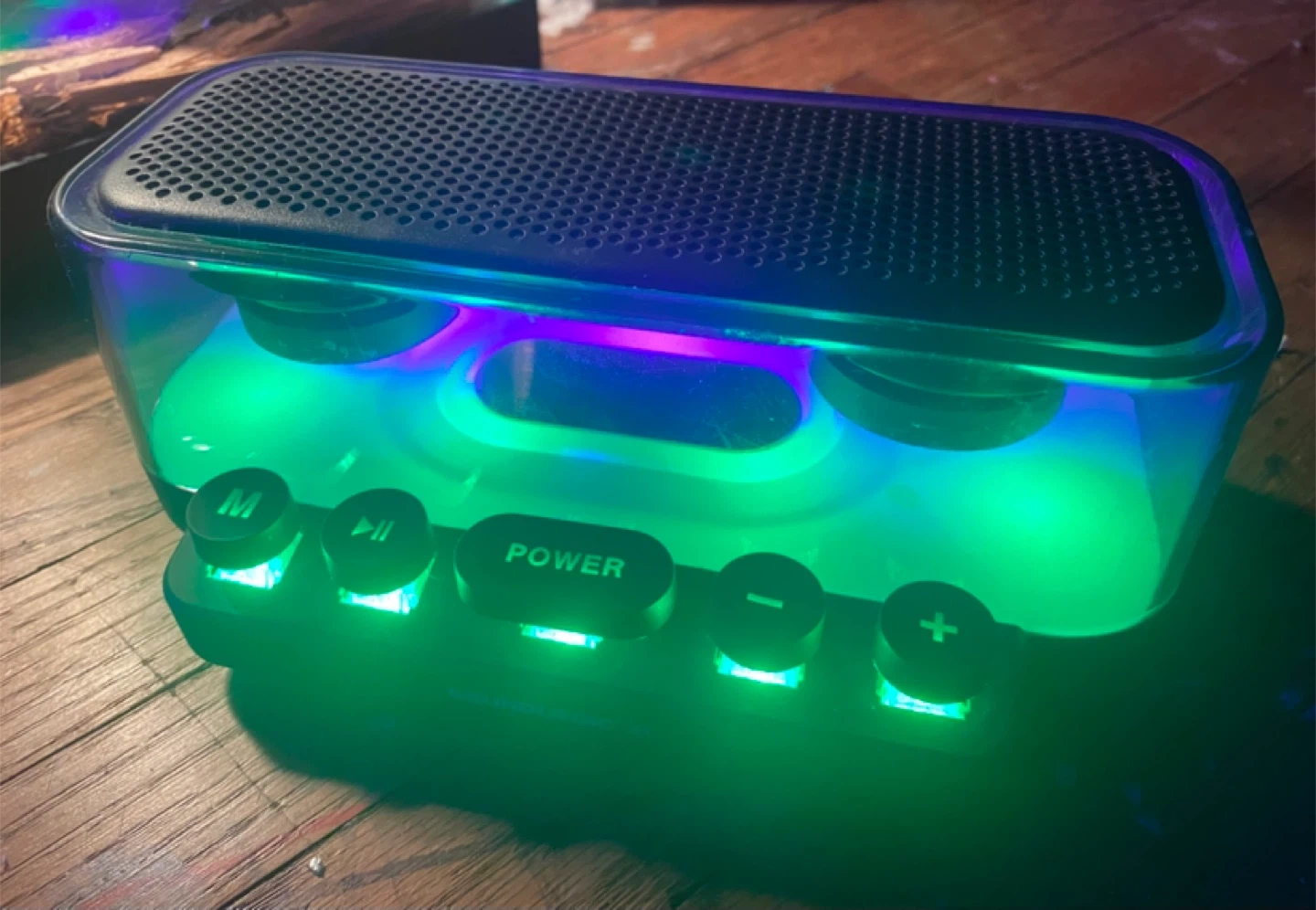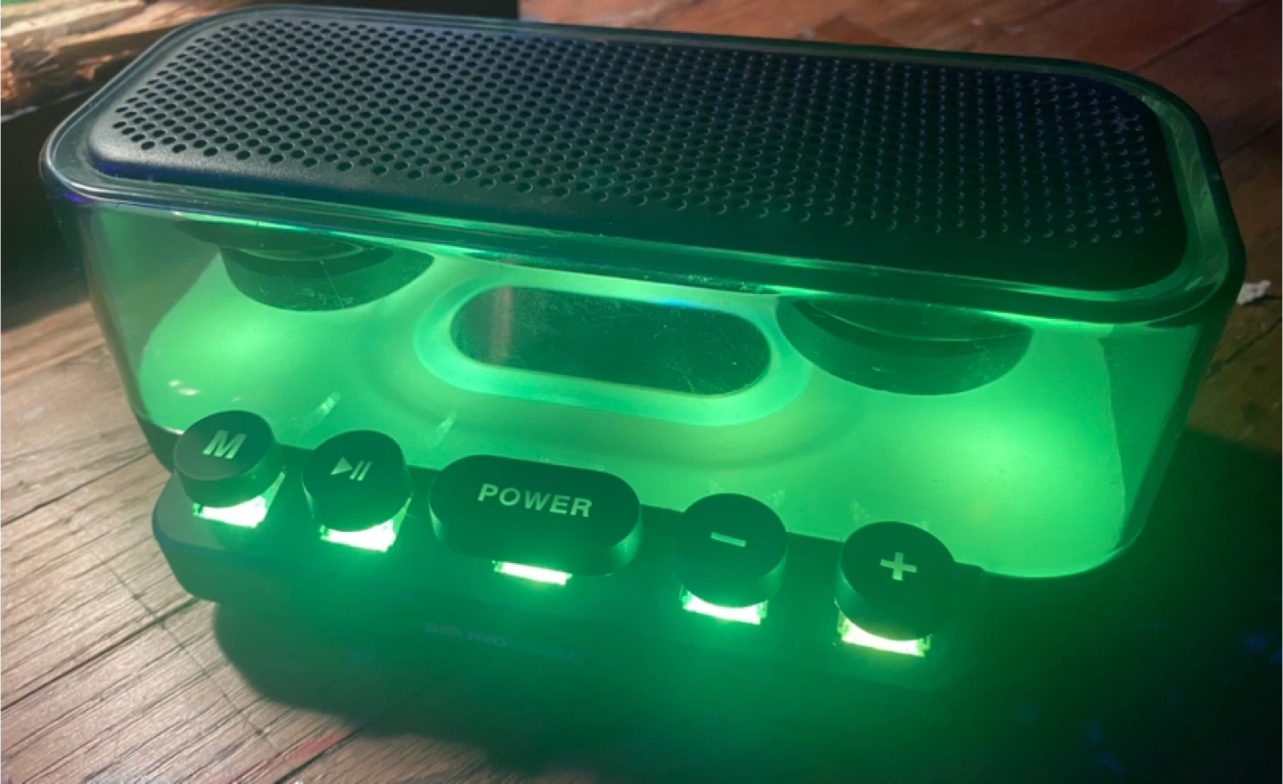 Check out this cool Soundlogic XT Bluetooth speaker! It lights up with different colours, which makes it a fun addition to any room. It's in great shape and ready to play your favourite tunes