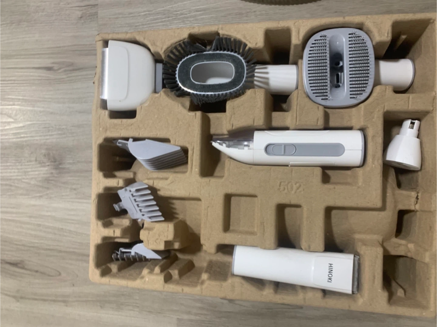 Selling a HINOKI pet grooming vacuum in great condition! This handy device makes grooming your furry friend a breeze. It comes with all the attachments shown in the picture, neatly organized in its original box. Keep your pet looking their best with this convenient grooming tool!