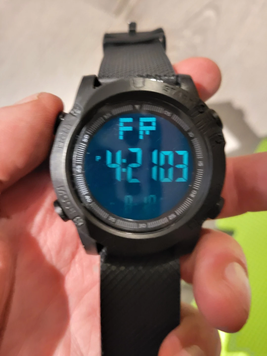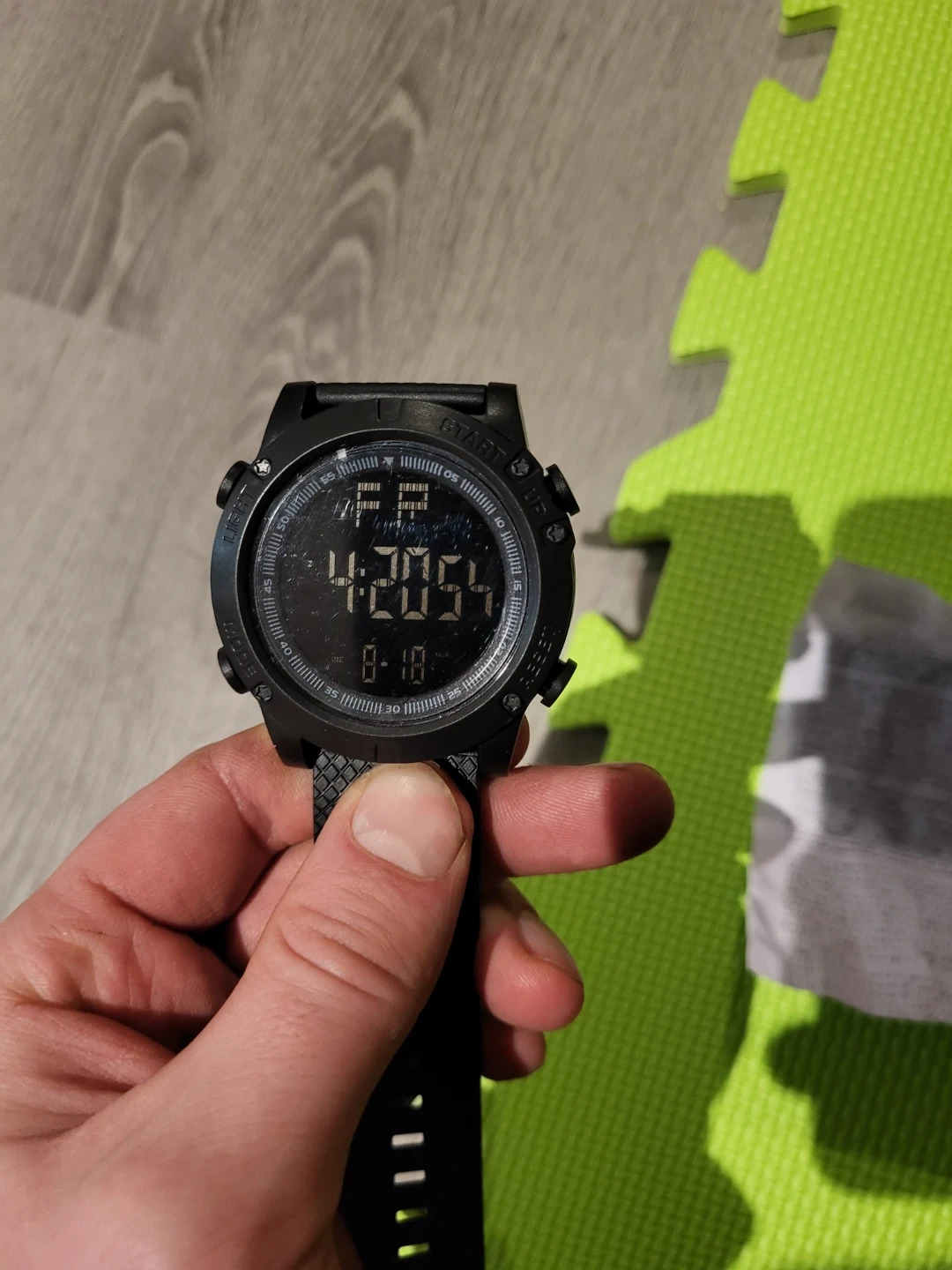Selling a black digital watch. It's in good condition and ready for a new wrist! The watch displays the time and date. It's a practical and stylish accessory for everyday wear.