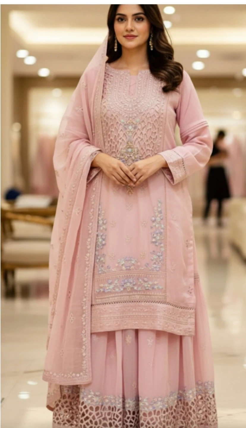 *CHIFFON 3 PIECE WITH GHARARA PANT*