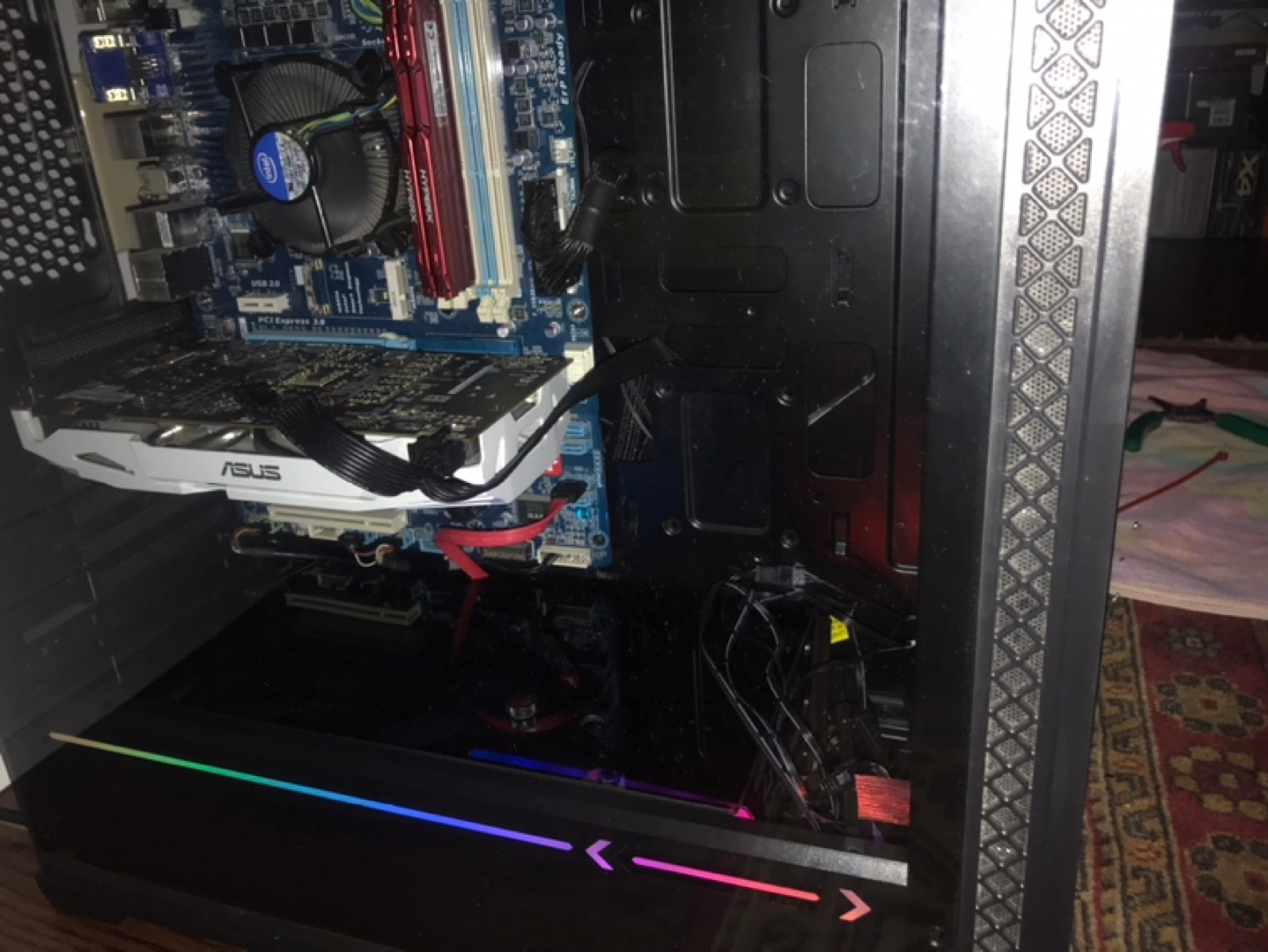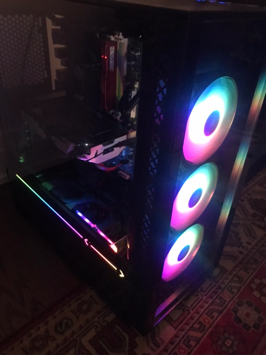 Selling a custom-built gaming PC. It features RGB fans and an ASUS graphics card for great performance and aesthetics. The case has a sleek design with a glass side panel to show off the components. Perfect for gaming or other demanding tasks!