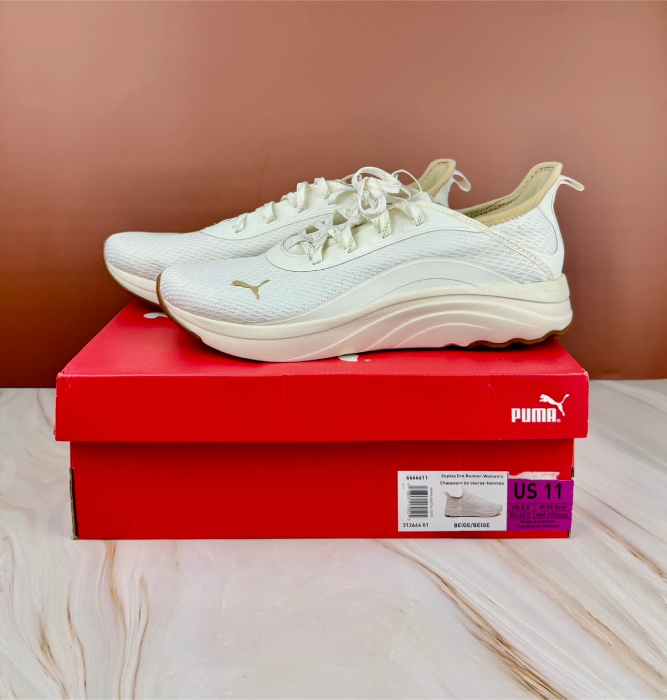 ๐ Selling a brand new pair of Puma Sophia Eve Runner women's shoes in size US 11. They come in the original box and are in beige/cream colour.