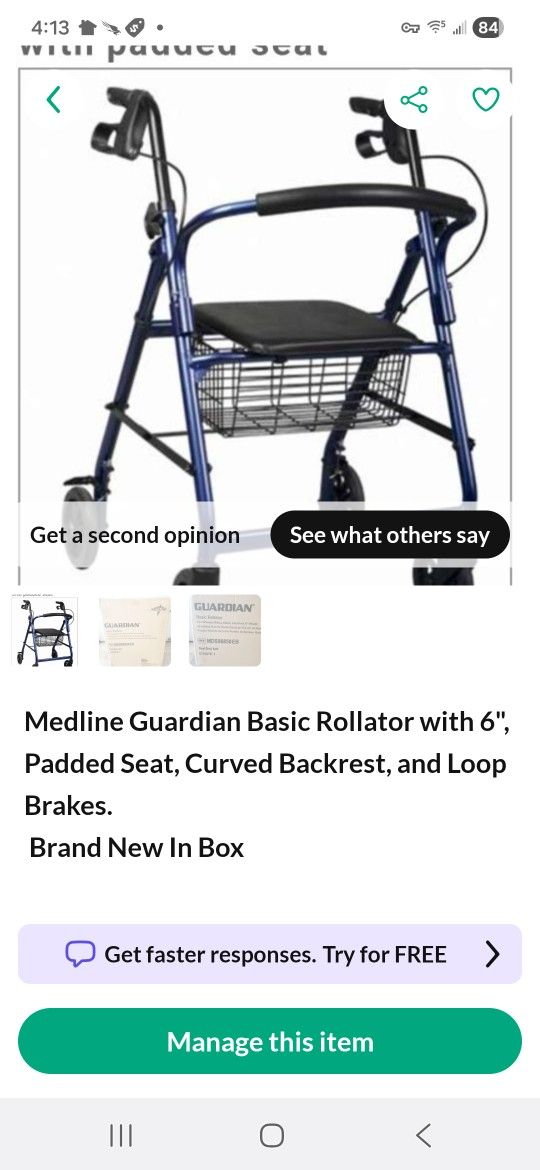 1 / 21 / 2Buy & SellMedline Rollator - Brand New In BoxMedline Rollator - Brand New In Box$65Brand: GuardianWHERE TO MEETCheck LocationView MapSELLERverifiedMichaelRockville Centre1548 reviews0 chats·0 favorites·2 viewsSEND CHAT TO SELLERHi Michael! I’m interested in your listing.Hi Michael! I’m interested in your listing.Get the Karrot app to chatSign In to chat