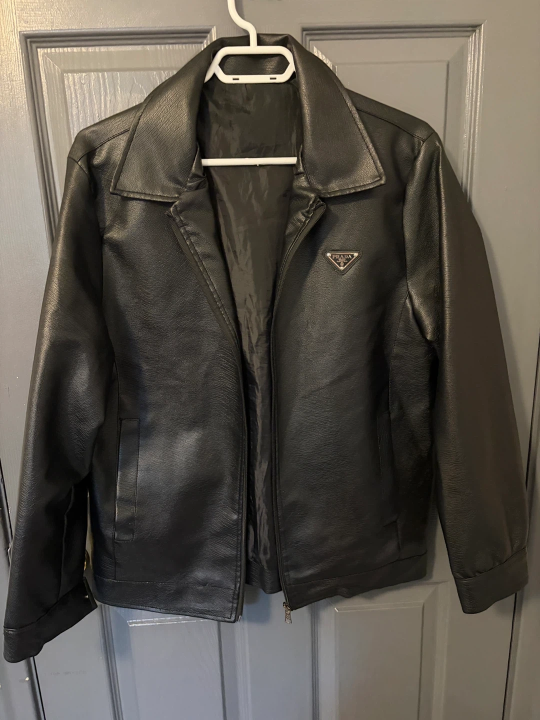 Selling a stylish Prada black leather jacket. It's in great condition and ready for a new owner! The jacket features the iconic Prada logo. Feel free to ask any questions!