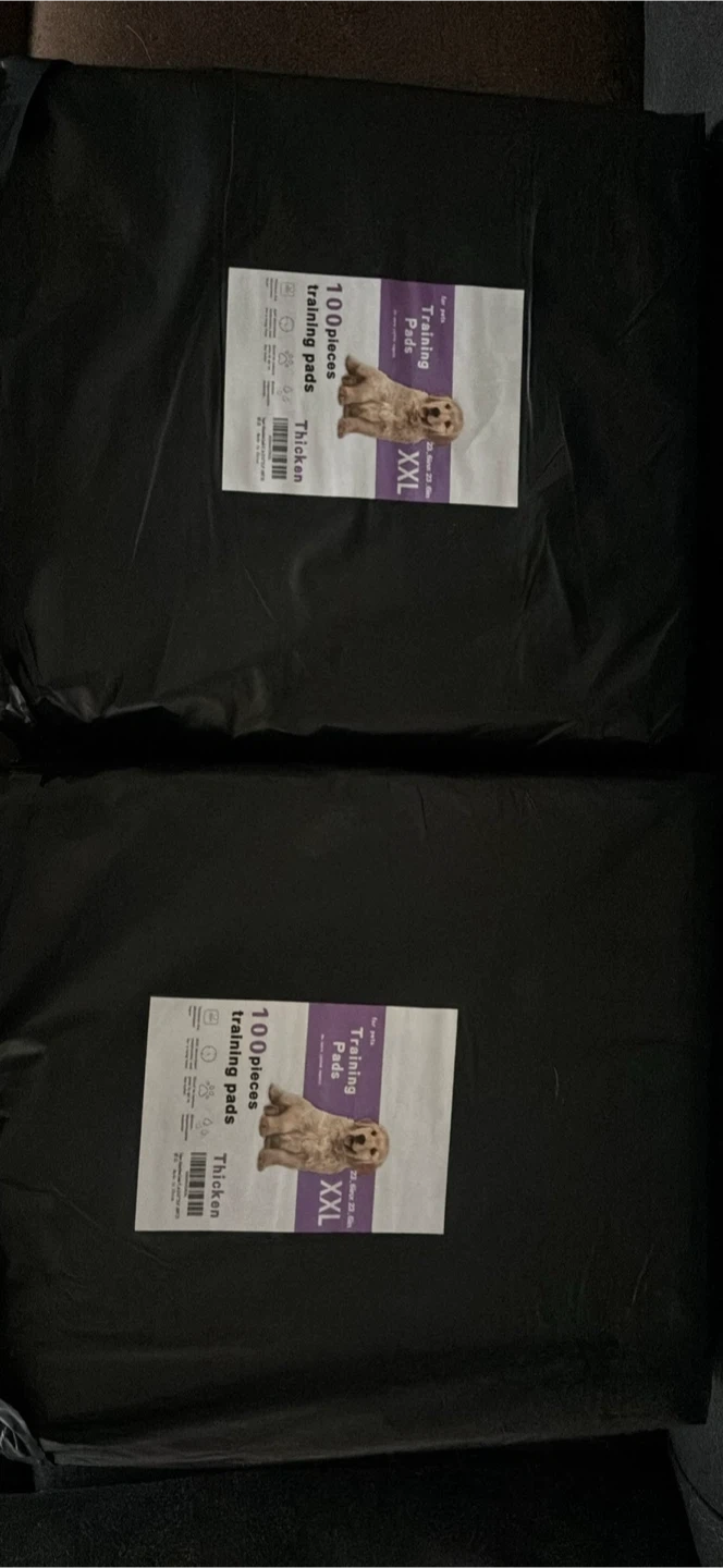 Selling a pack of XXL training pads for pets. The pack contains 100 pieces and the pads are designed to be thick and absorbent for easy clean-up.