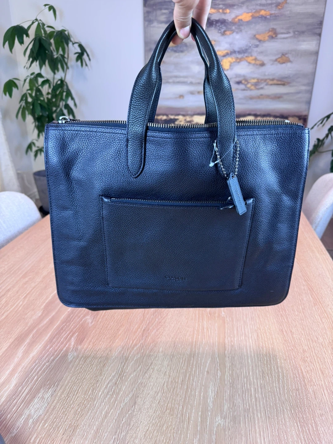 Check out this Coach black leather tote bag! It's in great condition and perfect for everyday use. The leather is soft and durable, and the classic design will never go out of style
