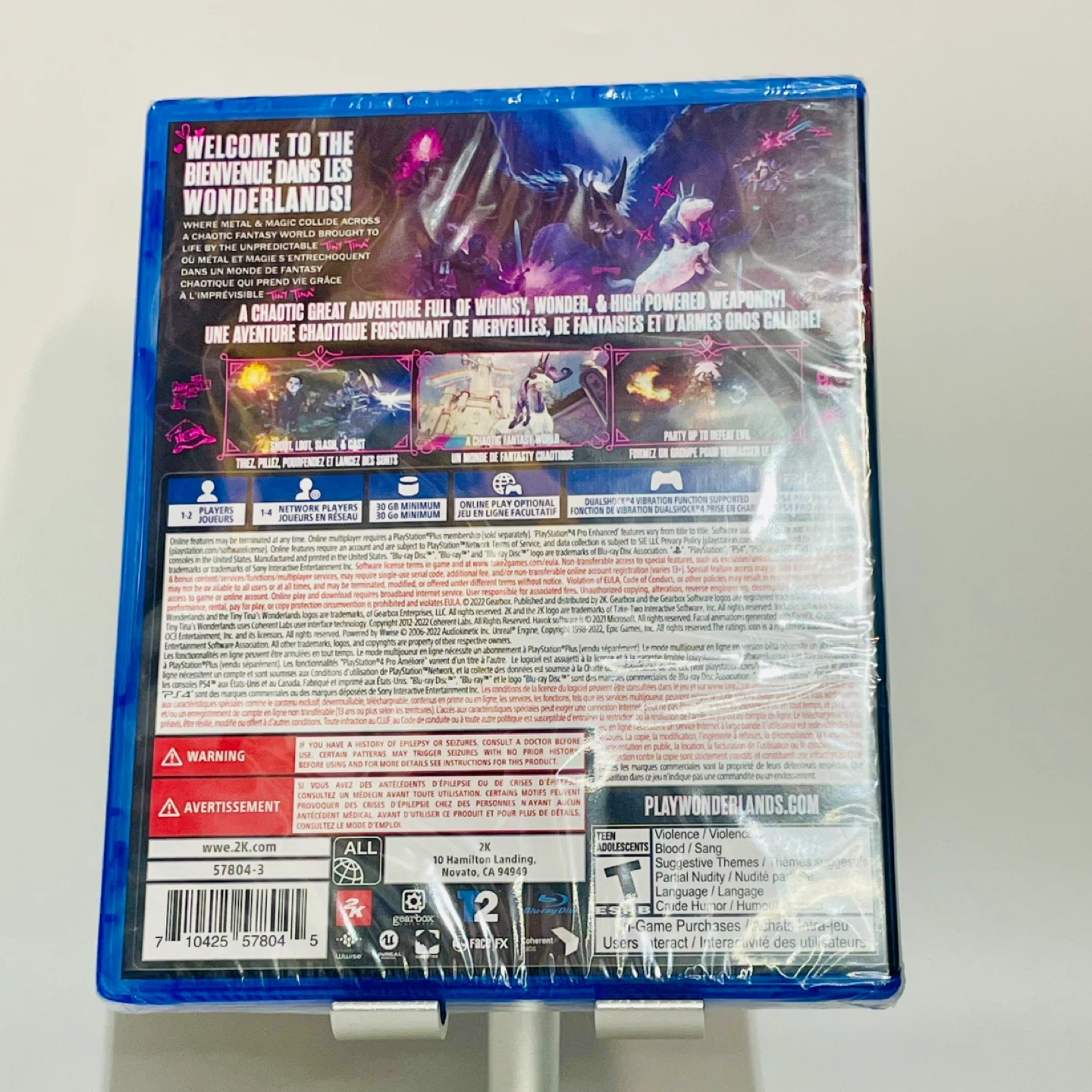 Selling a brand new, sealed copy of Tiny Tina's Wonderlands for the PS4! It's rated T for Teen and published by 2K and Gearbox Software. Get ready for a chaotic adventure full of whimsy, wonder, and high-powered weaponry! Perfect for anyone who enjoys a good fantasy shooter