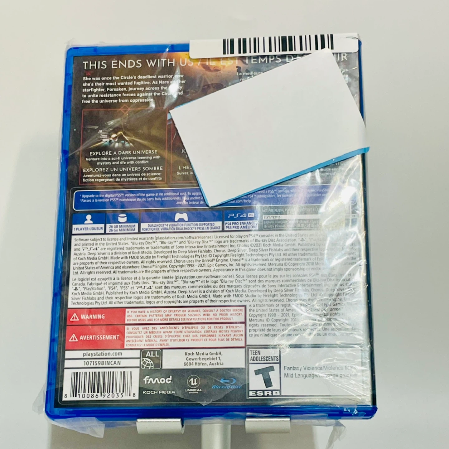 Selling a brand new copy of Chorus for the PS4! Get ready to explore a dark universe filled with mystery and conflict. This game is rated T for Teen by the ESRB, with fantasy violence and mild language.
