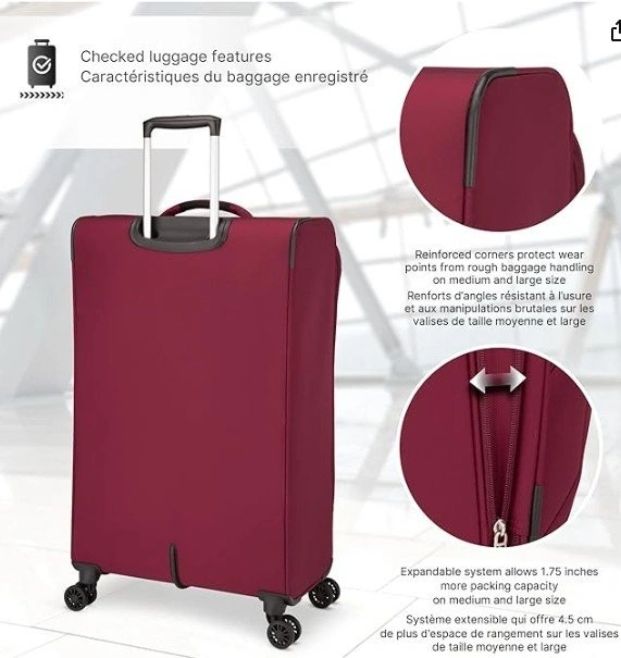 Extra Capacity: Expandable design offers more packing capacity while lightweight construction helps keep the baggage from surpassing weight requirements.