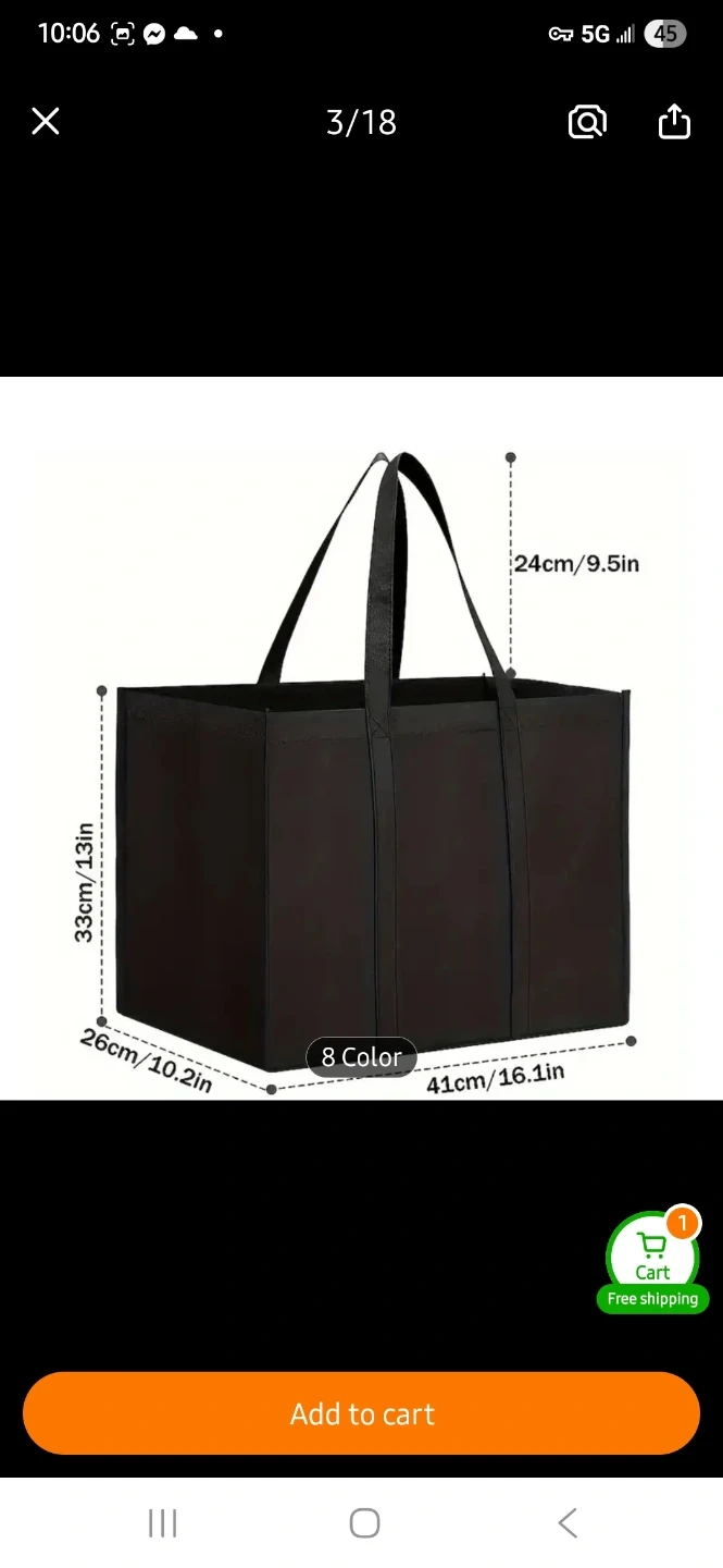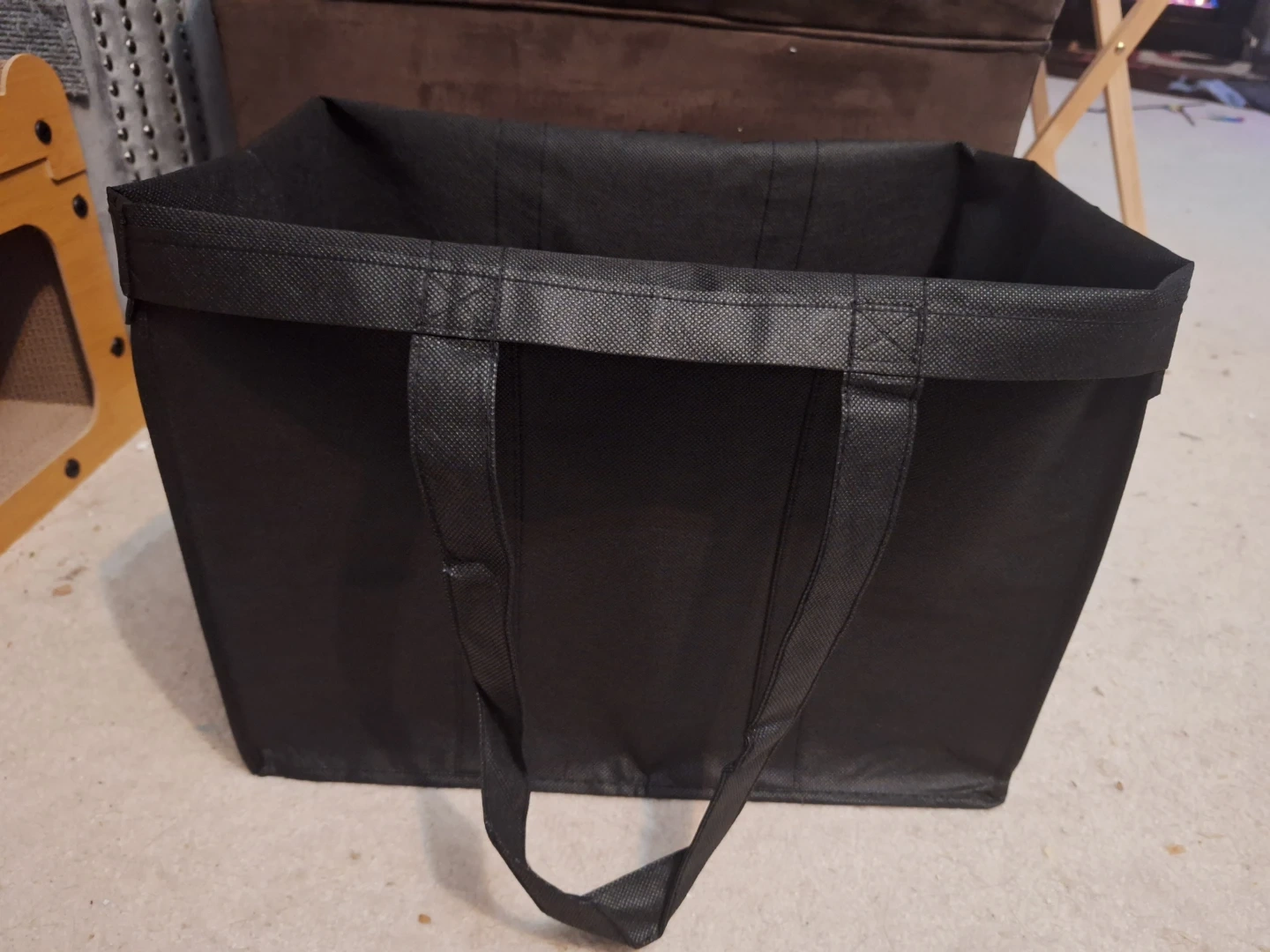 Selling some black reusable grocery bags! They're made of durable fabric with reinforced long handles. Great for hand holding or carrying on your shoulder. Approximate dimensions are 33cm/13in height, 41cm/16.1in width, and 26cm/10.2in depth