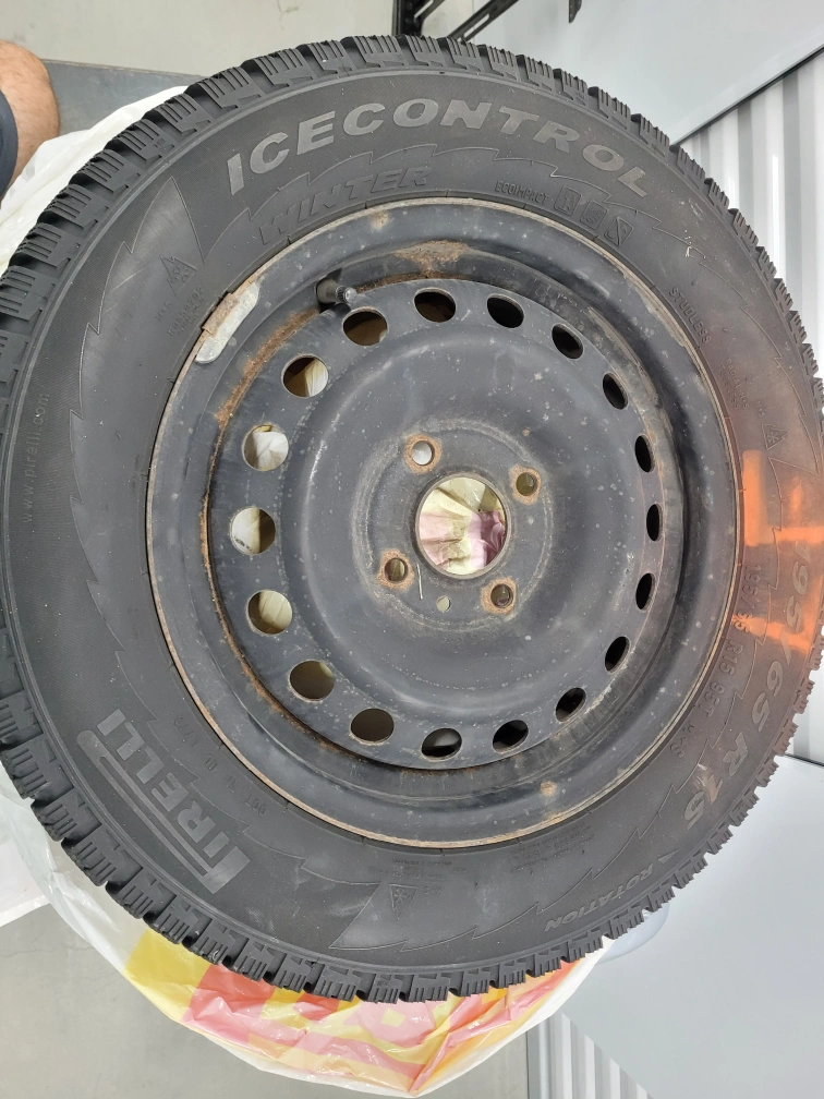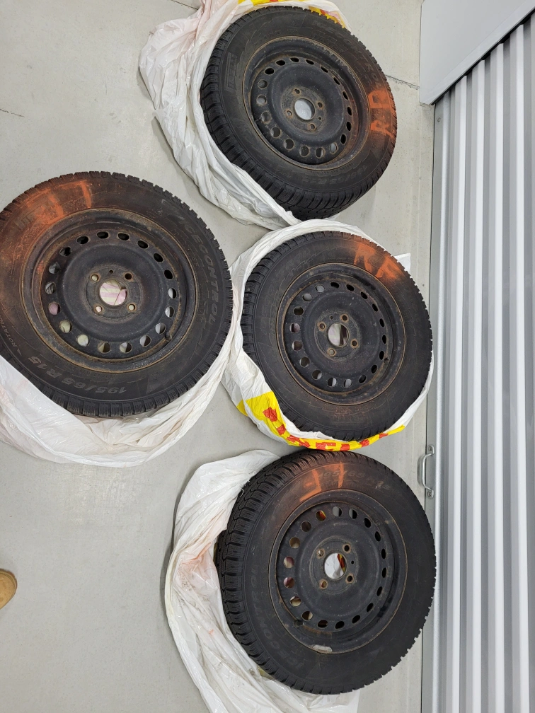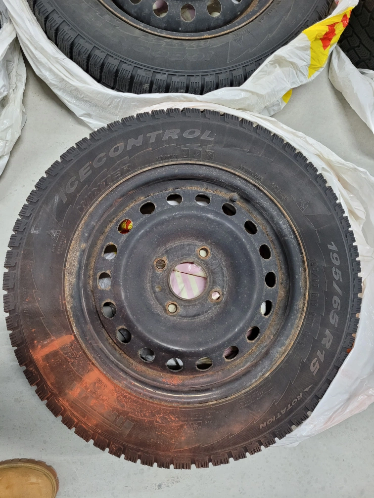 Selling a complete set of 4 Pirelli Winter Ice Control tires (195/65R15) mounted on balanced black steel rims. This is a high-performance winter setup designed for maximum grip on ice and deep snow.