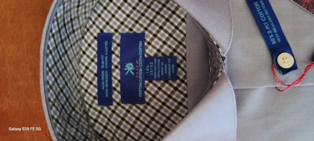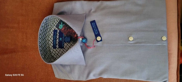 Selling a high-quality Egara slim fit dress shirt made from 80s 2-ply Egyptian cotton. Purchased from Moores. This is a non-iron shirt—very comfortable, breathable, and perfect for work, formal events, or business wear.