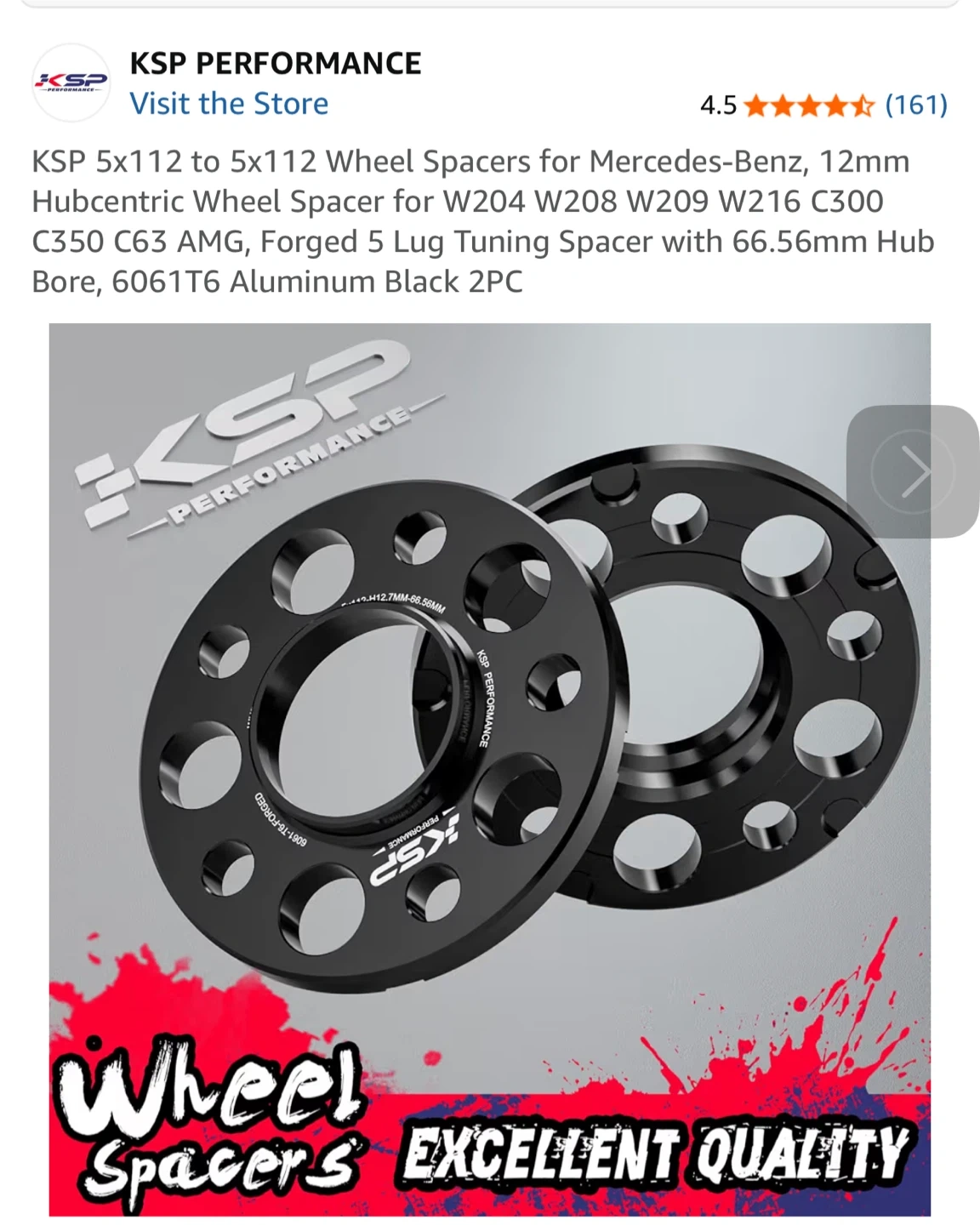 Selling a pair of KSP 5x112 wheel spacers for Mercedes-Benz! These are 12mm hubcentric wheel spacers, perfect for W204, W208, W209, W216, C300, C350, and C63 AMG models. They feature a forged 5 lug tuning spacer with a 66.56mm hub bore and are made of 6061T6 aluminum in black. The spacers are CNC machined for high precision and have a black anodized surface for corrosion resistance. They are lightweight and solid, enhancing your driving experience by allowing for larger tire installation. Includes the box!