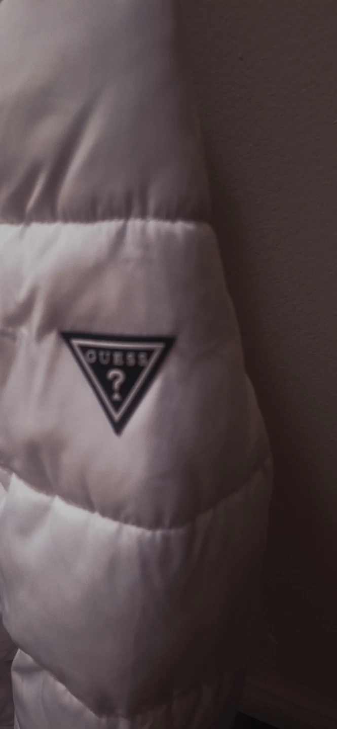 Selling a stylish Guess white puffer jacket in size S. It's a great addition to any wardrobe for those chilly days!