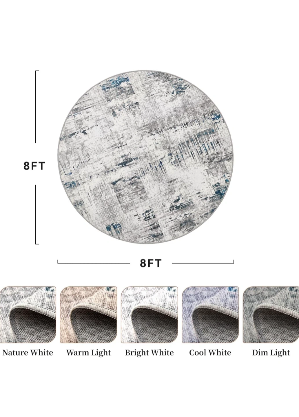 8 FT Round Area Rug - Nature White
