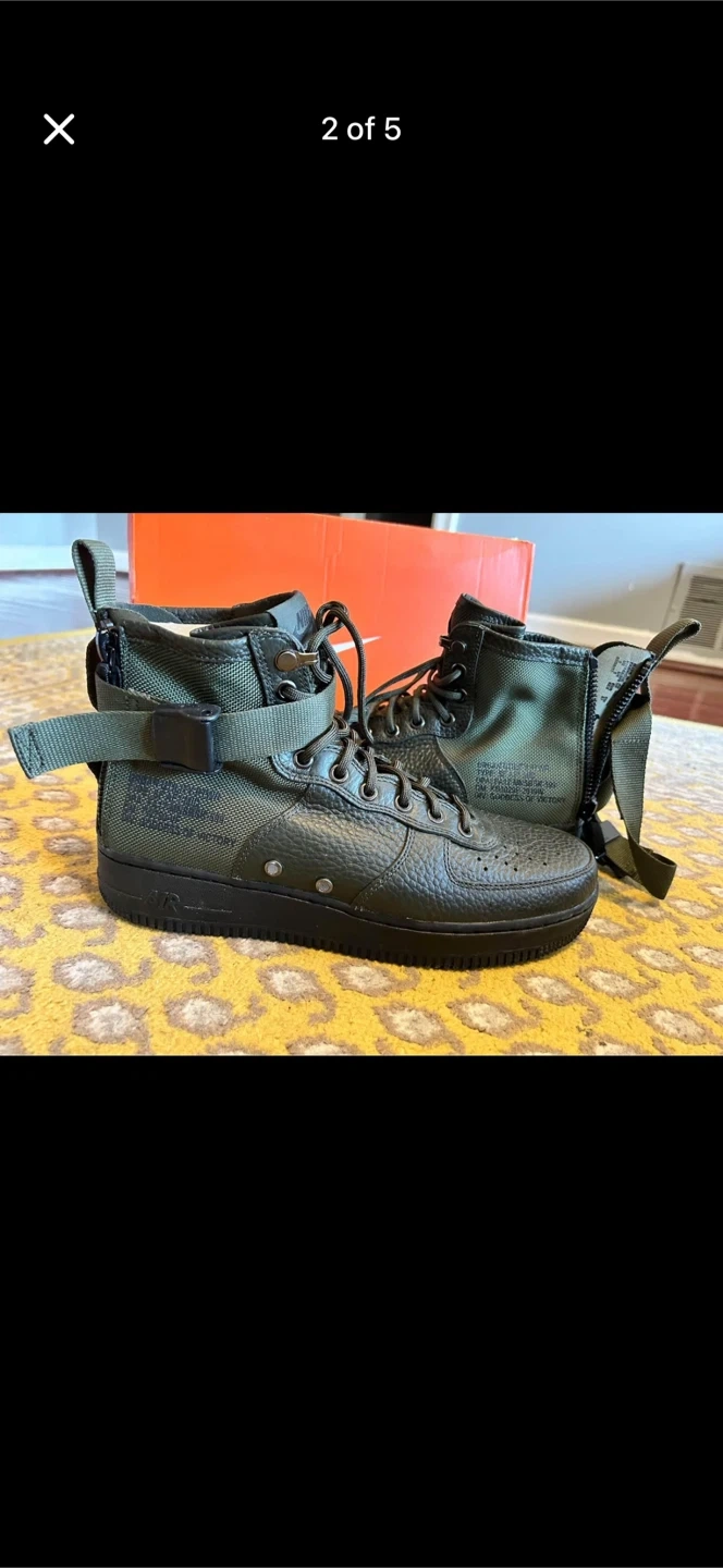 Selling a pair of Nike SF Air Force 1 Mid in the Sequoia colour. These are a US size 8. Great for adding a unique touch to your style!