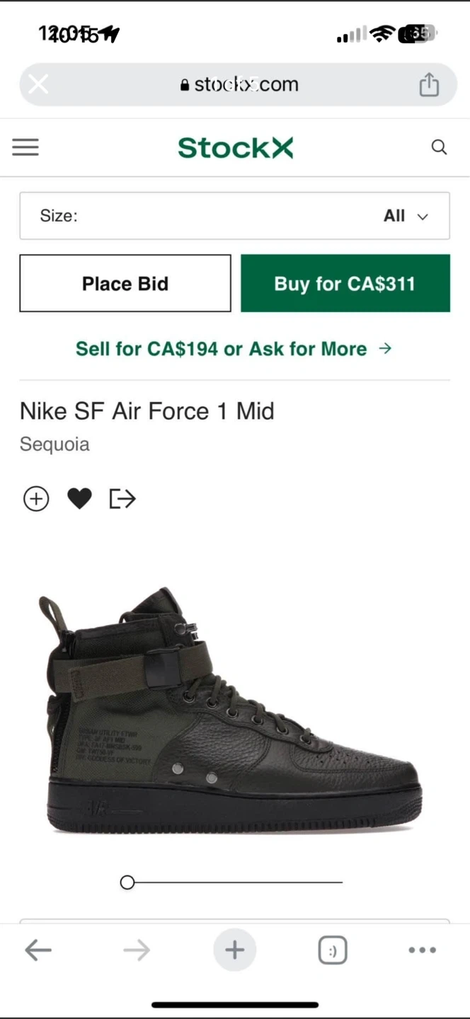 Selling a pair of Nike SF Air Force 1 Mid in the Sequoia colour. These are a US size 8. Great for adding a unique touch to your style!