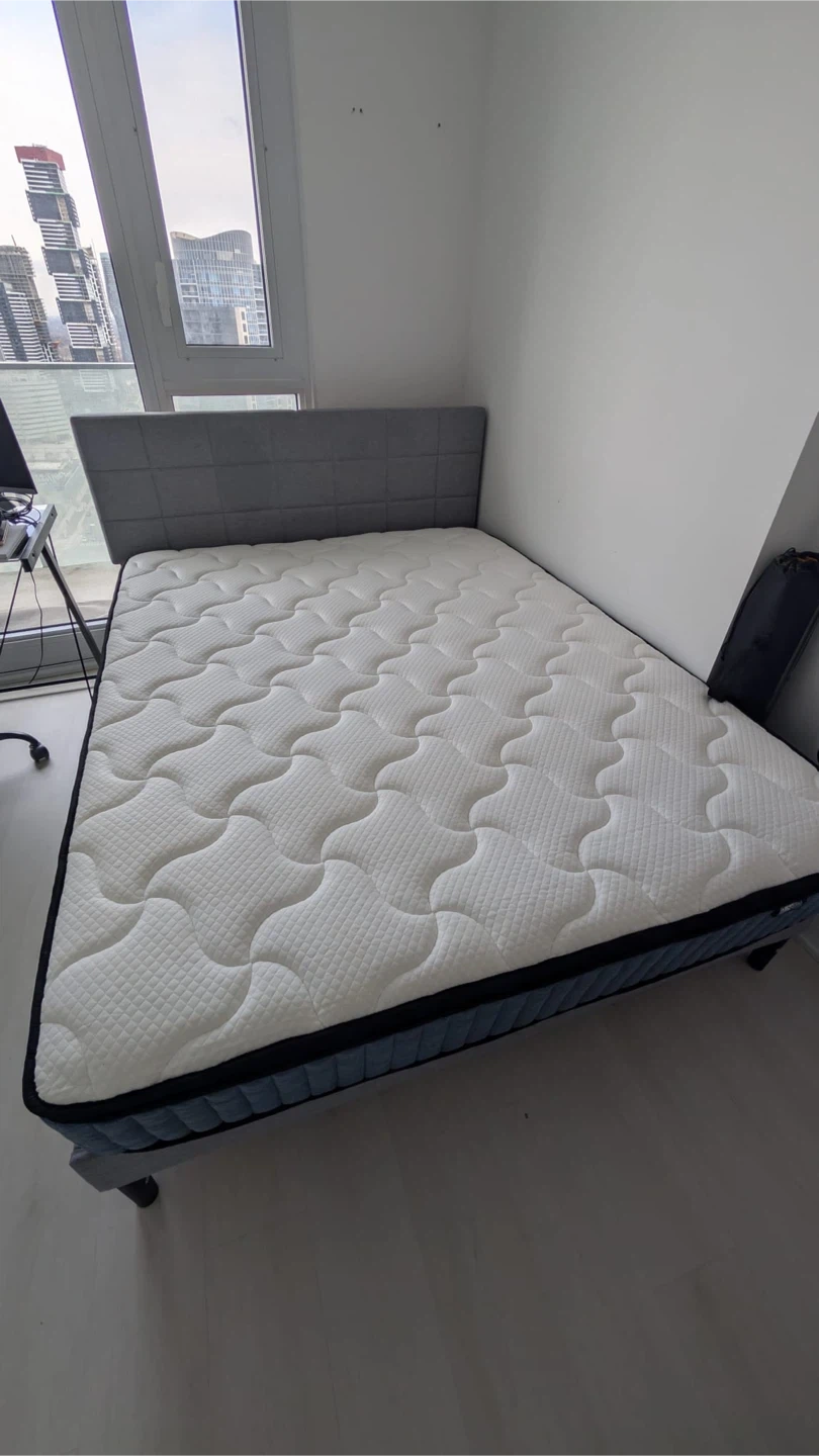 Selling a Queen-size hybrid mattress with bed frame in excellent condition. Perfect for anyone looking for comfort, support, and quality at a great price!