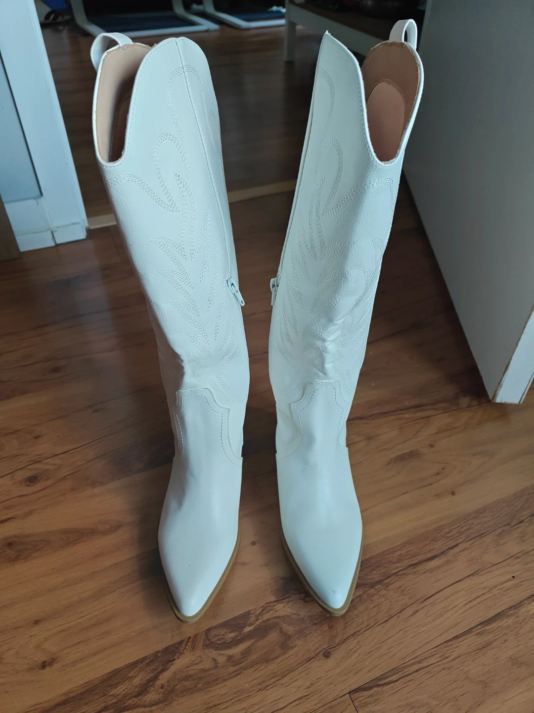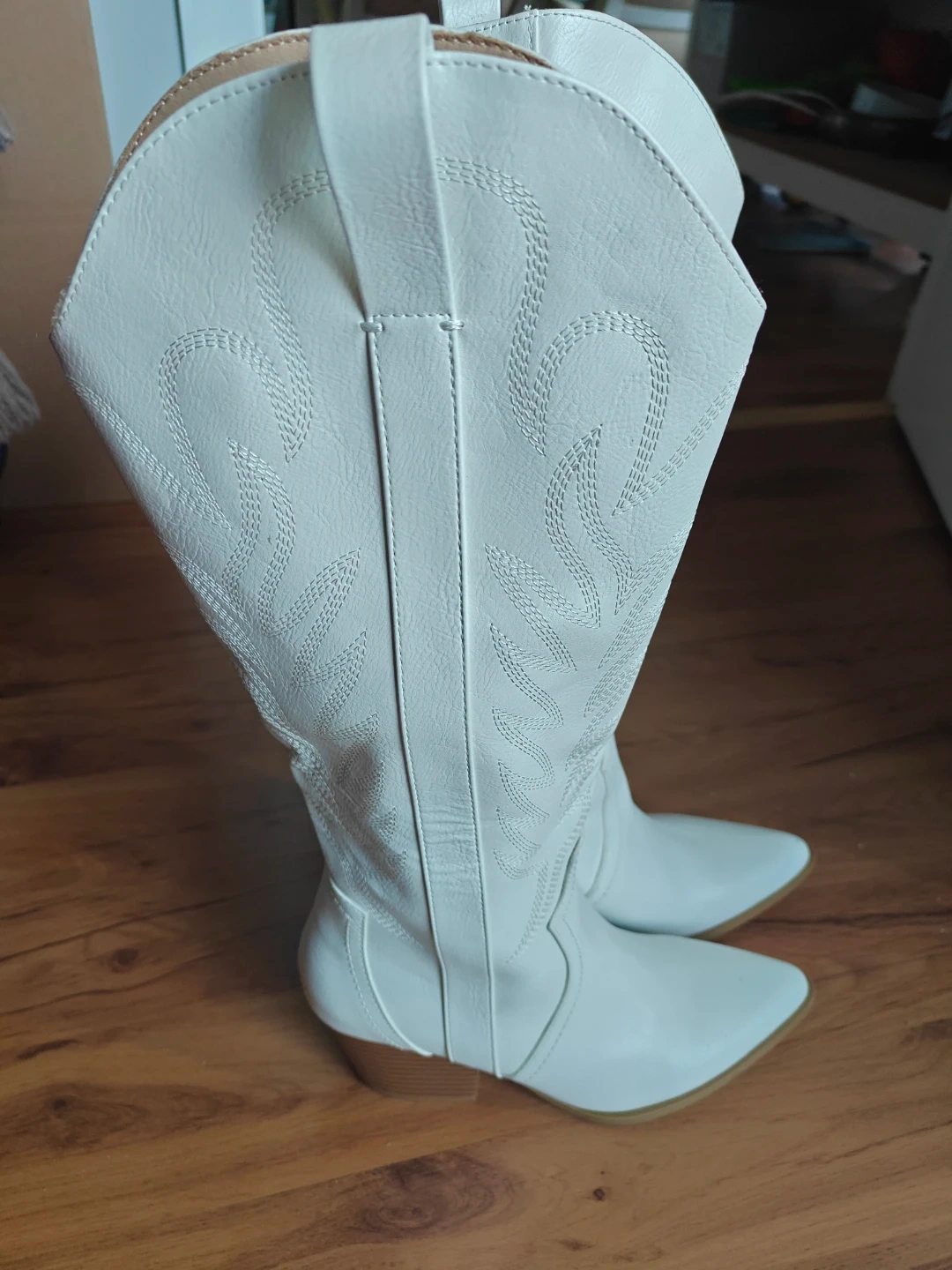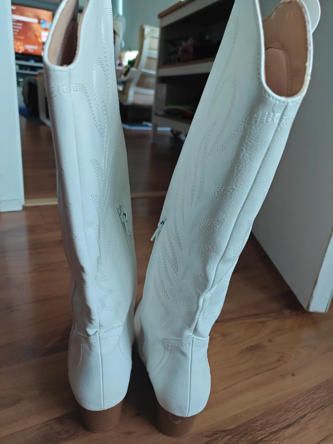 Selling a pair of brand new white, knee-high cowboy boots. They are brand new, no scratches, no stains, never been worn and ready for a new home! The boots are a women's size 7.